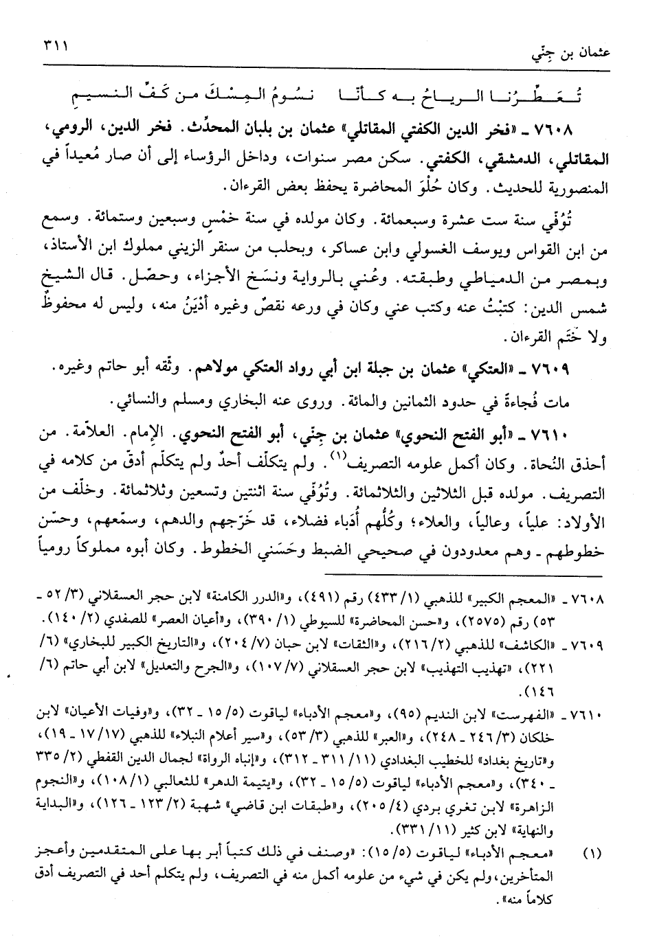 عُثْمَان بن جني أَبُو الْفَتْح النَّحْوِيّ الإِمَام الْعَلامَة من أحذق النُّحَاة