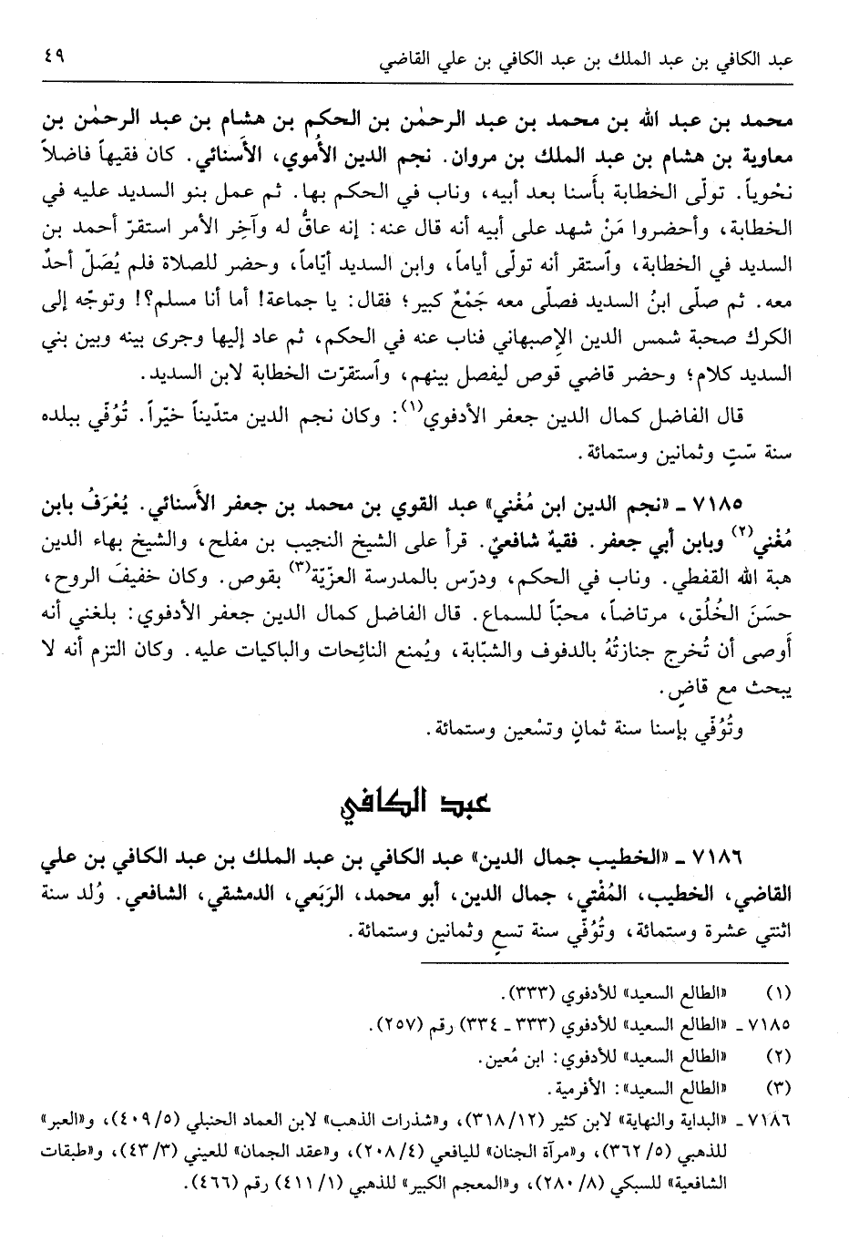 قَالَ الْفَاضِل كَمَال الدّين جَعْفَر الأدفوني وَكَانَ نجم الدّين متديناً خيرا توفّي بِبَلَدِهِ سنة سِتّ وَثَمَانِينَ وست ماية