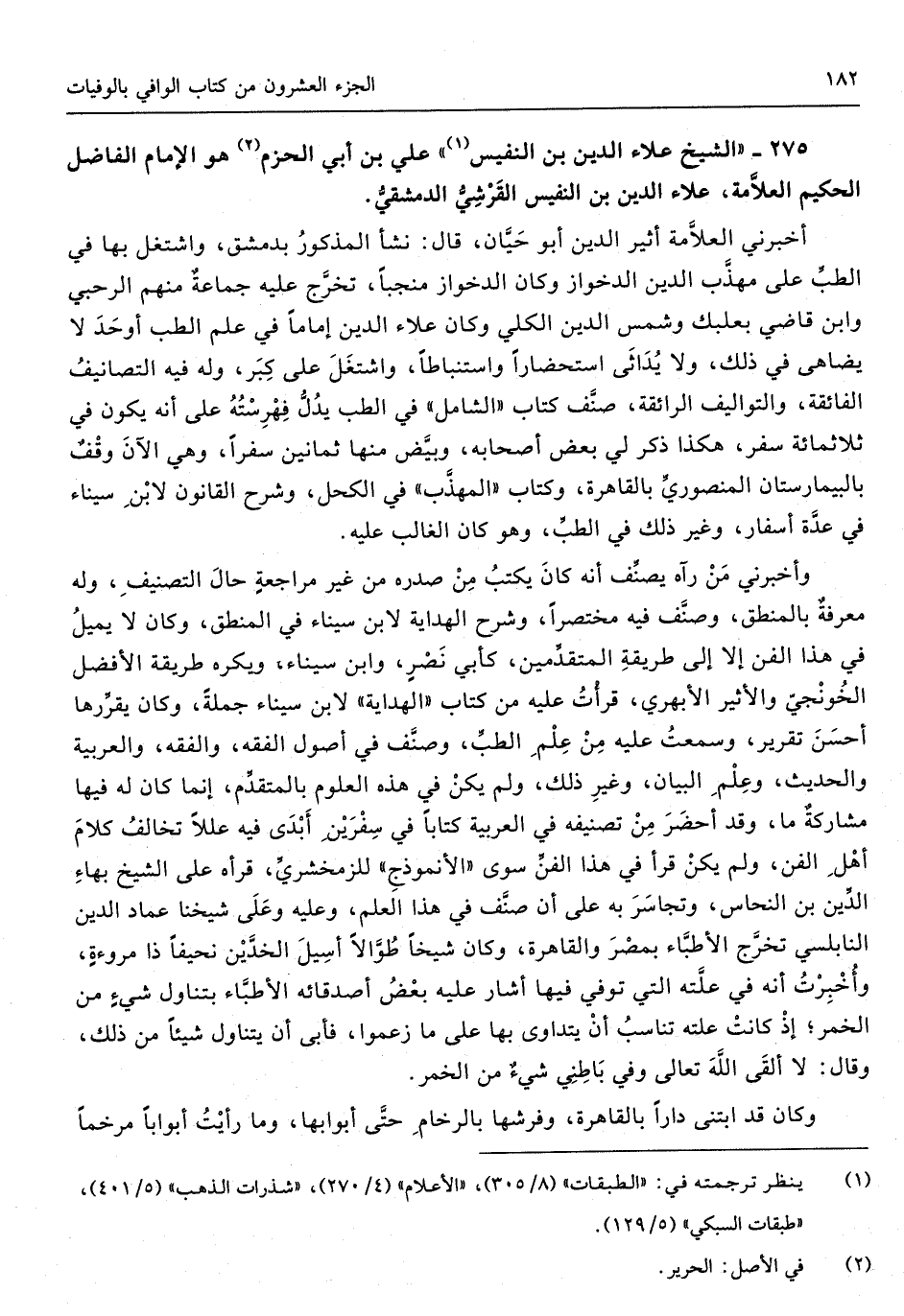 275 - الشَّيْخ عَلَاء الدّين بن النفيس عَليّ بن أبي الحزم هُوَ الإِمَام الْفَاضِل الْحَكِيم الْعَلامَة عَلَاء الدّين بن النفيس الْقرشِي الدِّمَشْقِي