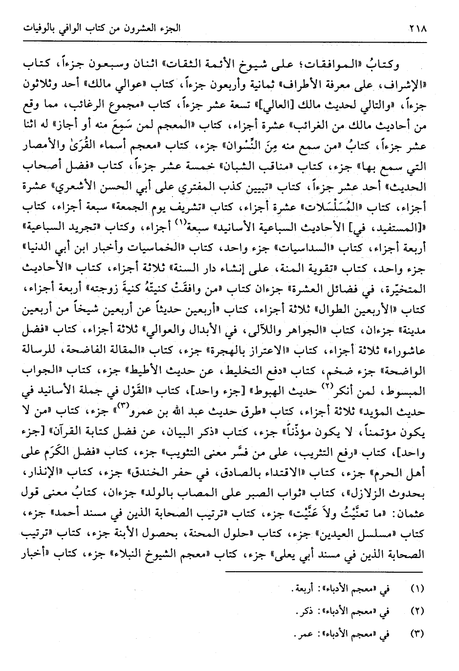 وَكتاب الموافقات على شُيُوخ الْأَئِمَّة الثِّقَات اثْنَان وَسَبْعُونَ جُزْءا كتاب الإشراف على معرفَة الْأَطْرَاف ثَمَانِيَة وَأَرْبَعُونَ جُزْءا كتاب عوالي مَالك أحد وَثَلَاثُونَ جُزْءا والتالي لحَدِيث مَالك العالي تِسْعَة عشر جُزْءا كتاب مَجْمُوع الرغائب مِمَّا وَقع من أَحَادِيث مَالك من الغرائب عشرَة أَجزَاء كتاب المعجم لمن سمع مِنْهُ أَو أجَاز لَهُ اثْنَا عشر جُزْءا كتاب من سمع مِنْهُ النسوان جُزْء كتاب مُعْجم أَسمَاء الْقرى والأمصار الَّتِي سمع بهَا جُزْء كتاب مَنَاقِب الشبَّان خَمْسَة عشر جُزْءا كتاب فضل أَصْحَاب الحَدِيث أحد عشر جُزْءا كتاب تَبْيِين كذب المفتري على أبي الْحسن الْأَشْعَرِيّ عشرَة أَجزَاء كتاب المسلسلات عشرَة أَجزَاء كتاب تشريف يَوْم الْجُمُعَة سَبْعَة أَجزَاء كتاب المستفيد فِي الْأَحَادِيث السباعية الْأَسَانِيد سَبْعَة أَجزَاء وَكتاب تَجْرِيد السباعية أَرْبَعَة أَجزَاء كتاب السداسيات جُزْء وَاحِد كتاب الخماسيات وأخبار ابْن أبي الدُّنْيَا جُزْء وَاحِد كتاب تَقْوِيَة المنه على إنْشَاء دَار السّنة ثَلَاثَة أَجزَاء كتاب الْأَحَادِيث المتخيرة فِي فَضَائِل الْعشْرَة جزءان كتاب من وَافَقت كنيته كنية زَوجته أَرْبَعَة أَجزَاء كتاب الْأَرْبَعين الطوَال ثَلَاثَة أَجزَاء كتاب أَرْبَعِينَ حَدِيثا عَن أَرْبَعِينَ شَيخا من أَرْبَعِينَ مَدِينَة جزءان كتاب الْجَوَاهِر واللآلى فِي الأبدال والعوالي ثَلَاثَة أَجزَاء كتاب فضل عَاشُورَاء ثَلَاثَة أَجزَاء كتاب الاعتزاز بالهجة جُزْء كتاب الْمقَالة الفاضحة للرسالة الْوَاضِحَة جُزْء ضخم كتاب دفع التَّخْلِيط عَن حَدِيث الأطيط جُزْء كتاب الْجَواب الْمَبْسُوط لمن أنكر حَدِيث الهبوط جُزْء وَاحِد كتاب القَوْل فِي جملَة الْأَسَانِيد فِي حَدِيث الْمُؤَيد ثَلَاثَة أَجزَاء كتاب طرق حَدِيث عبد الله بن عَمْرو جُزْء كتاب من لَا يكون مؤتمنا لَا يكون مُؤذنًا جُزْء كتاب ذكر الْبَيَان عَن فضل كِتَابَة الْقُرْآن جُزْء وَاحِد كتاب رفع التثريب على من فسر معنى التثويب جُزْء كتاب فضل الْكَرم على أهل الْحرم جُزْء كتاب الِاقْتِدَاء بالصادق فِي حفر الخَنْدَق جُزْء كتاب الْإِنْذَار بحدوث الزلازل كتاب ثَوَاب الصَّبْر على الْمُصَاب بِالْوَلَدِ جزءان كتاب معنى قَول عُثْمَان مَا تعنيت وَلَا عنيت جُزْء كتاب تَرْتِيب الصاحبة الَّذِي فِي مُسْند أَحْمد جُزْء كتاب مسلسل الْعِيدَيْنِ جُزْء كتاب حُلُول المحنة بِحُصُول الأبنة جُزْء كتاب تَرْتِيب الصَّحَابَة الَّذين فِي مُسْند أبي يعلى جُزْء كتاب مُعْجم الشُّيُوخ النبلاء جُزْء كتاب أَخْبَار