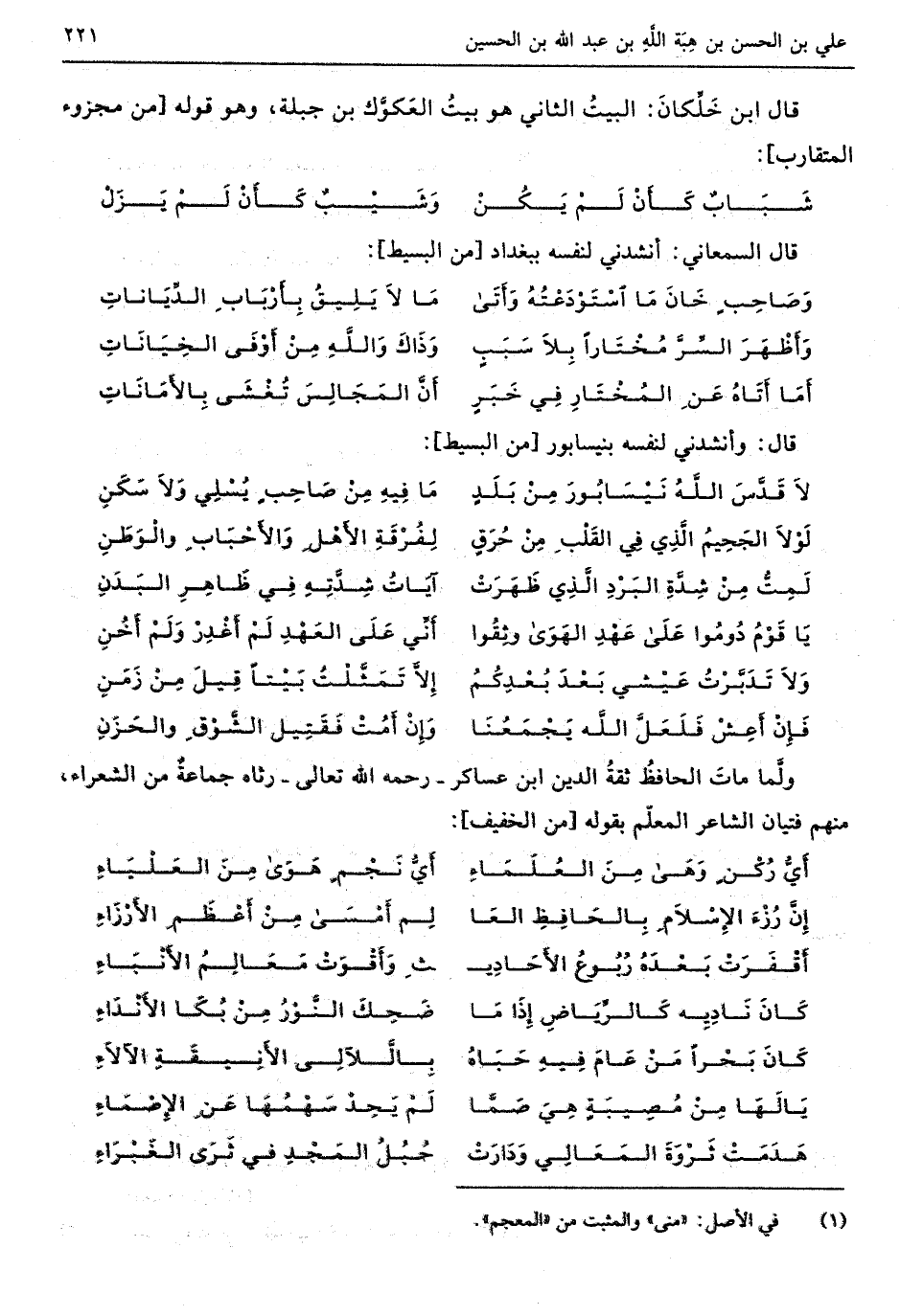قَالَ السَّمْعَانِيّ أَنْشدني لنَفسِهِ بِبَغْدَاد // (من الْبَسِيط) //