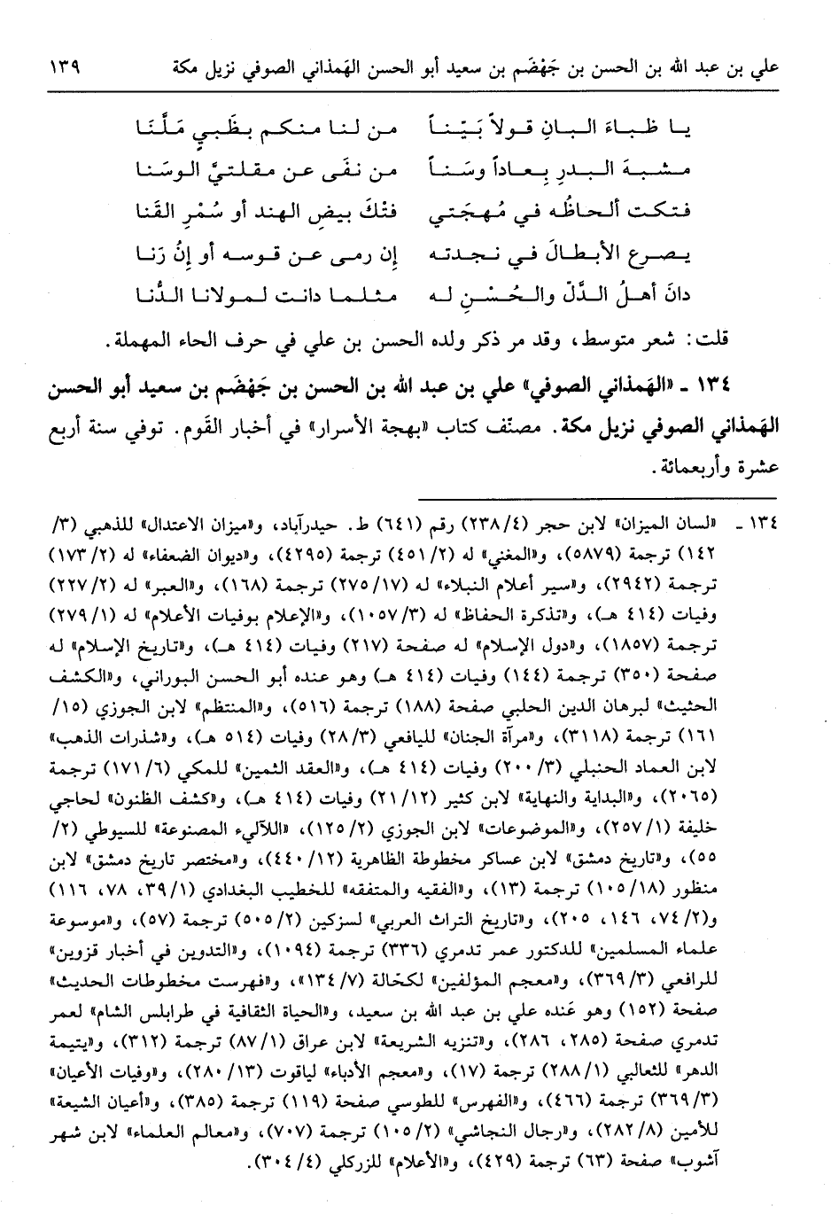 الهمذاني الصُّوفِي عَليّ بن عبد الله بن الْحسن بن جَهْضَم بن سعيد أَبُو الْحسن الهمذاني الصُّوفِي نزيل مَكَّة