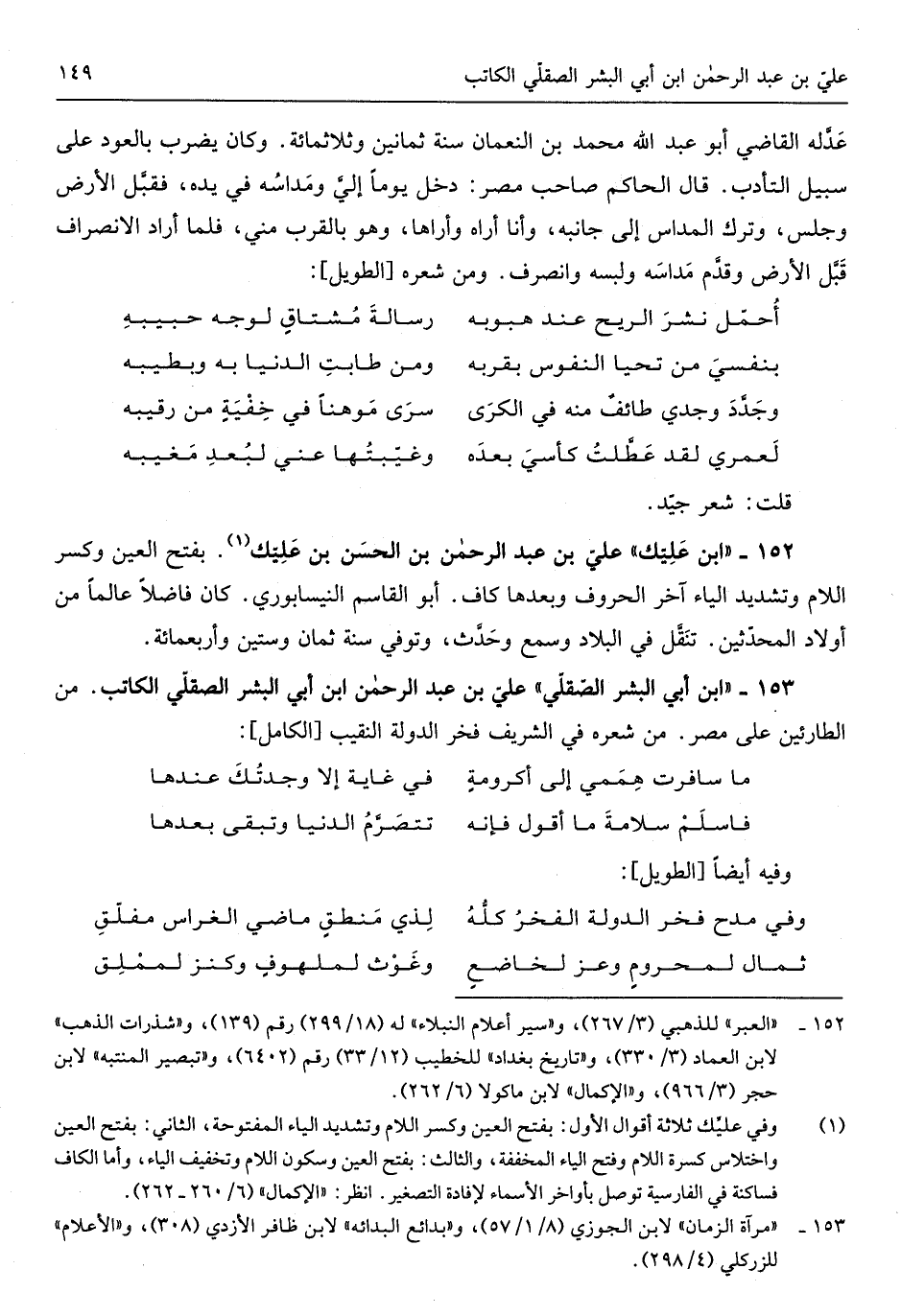 ابْن أبي الْبشر الصّقليّ عَليّ بن عبد الرَّحْمَن ابْن أبي الْبشر الصّقليّ الْكَاتِب من الطارئين على مصر من شعره فِي الشريف فَخر الدولة النَّقِيب من الْكَامِل
