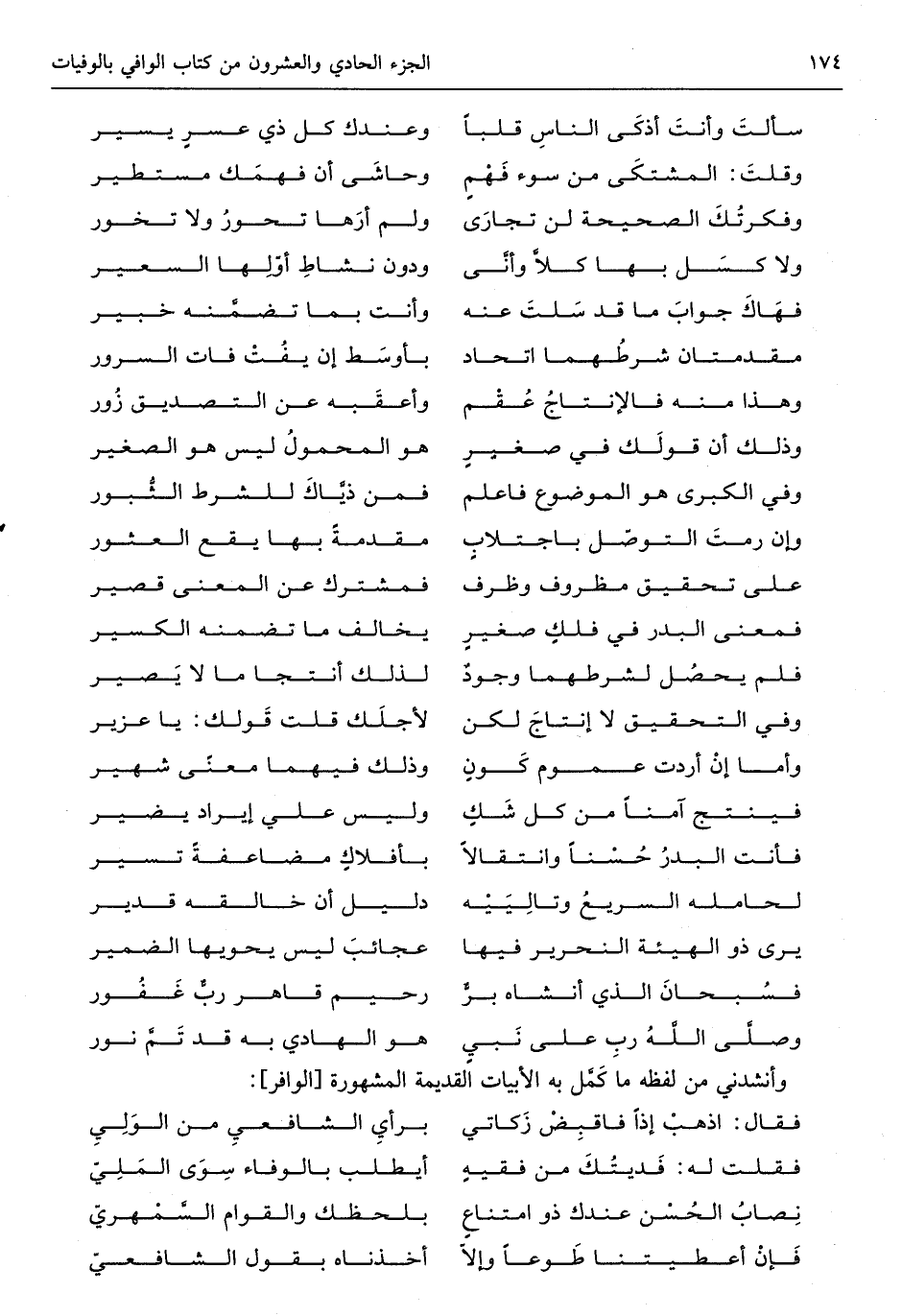 وأنشدني من لَفظه مَا كمل بِهِ الأبيات الْقَدِيمَة الْمَشْهُورَة من الوافر