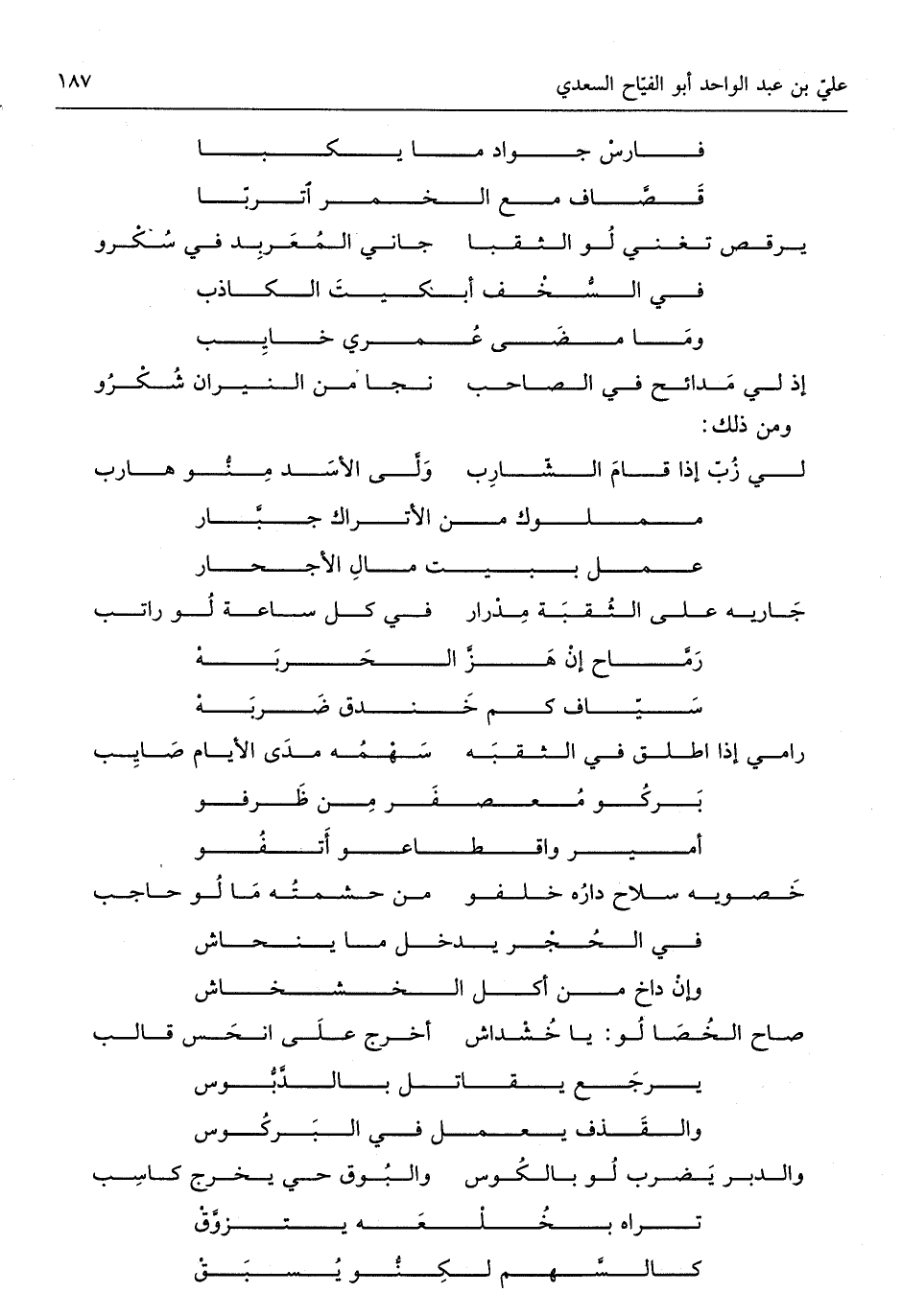 (يرقص تغني لَو الثقبا ... جاني المعربد فِي سكرو)