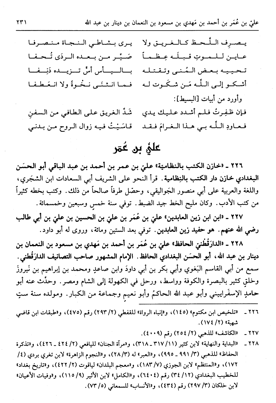 الدَّارَقُطْنِيّ الْحَافِظ عَليّ بن عمر بن أَحْمد بن مهْدي بن مَسْعُود بن النُّعْمَان بن دِينَار بن عبد الله أَبُو الْحسن الْبَغْدَادِيّ الْحَافِظ الإِمَام الْمَشْهُور صَاحب التصانيف الدَّارَقُطْنِيّ سمع من أبي الْقَاسِم الْبَغَوِيّ وَأبي بكر ابْن أبي دَاوُد وَابْن صاعد وَمُحَمّد بن إِبْرَاهِيم بن نيروز وَخلق كثير بِالْبَصْرَةِ والكوفة وواسط ورحل فِي الكهولة إِلَى الشَّام ومصر وَحدث عَنهُ أَبُو حَامِد الإِسْفِرَايِينِيّ وَأَبُو عبد الله الْحَاكِم وَأَبُو نعيم وَجَمَاعَة من الْكِبَار ومولده سنة سِتّ