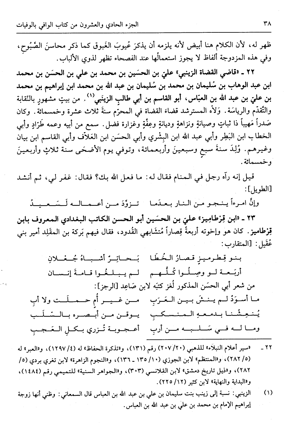 قَاضِي الْقُضَاة الزَّيْنَبِي عَليّ بن الْحُسَيْن بن مُحَمَّد بن عَليّ بن الْحسن بن مُحَمَّد بن عبد الْوَهَّاب بن سُلَيْمَان بن مُحَمَّد بن سُلَيْمَان بن عبد الله بن مُحَمَّد بن إِبْرَاهِيم بن مُحَمَّد بن عَليّ بن عبد الله بن الْعَبَّاس أَبُو)