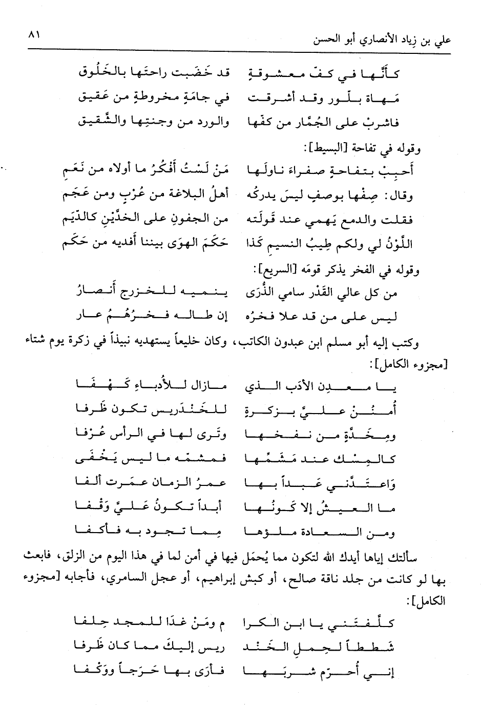 وَكتب إِلَيْهِ أَبُو مُسلم ابْن عبدون الْكَاتِب وَكَانَ خليعاً يستهديه نبيذاً فِي زكرة يَوْم شتاء من مجزوء الْكَامِل