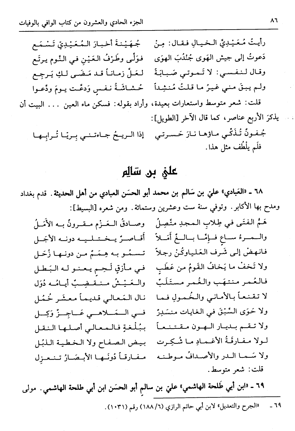 الْعَبَّادِيّ عَليّ بن سَالم بن مُحَمَّد أَبُو الْحسن الْعَبَّادِيّ من أهل الحديثة قدم بَغْدَاد وملح بهَا الأكابر