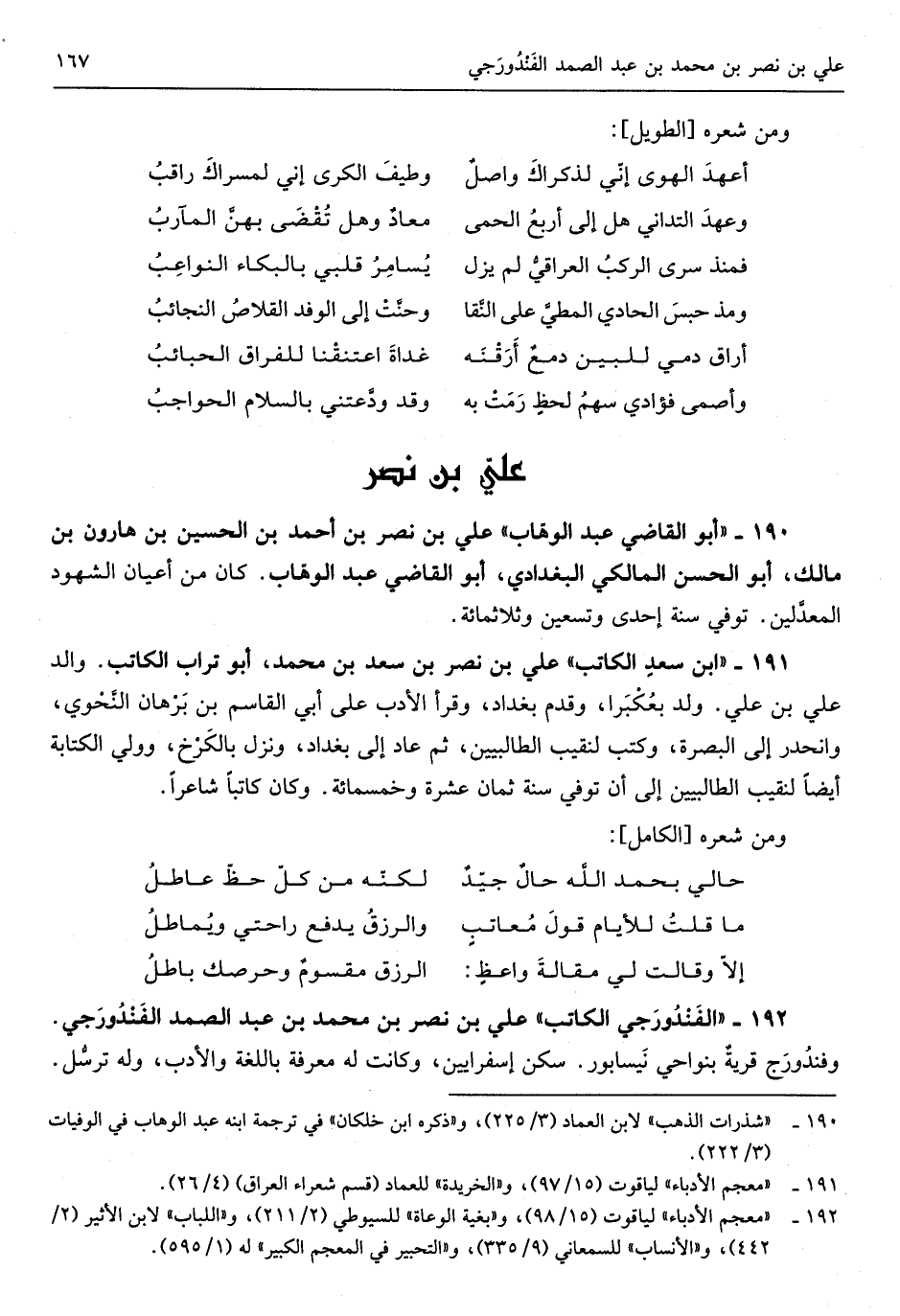 عَليّ بن نصر بن مُحَمَّد بن عبد الصَّمد الفَنْدُورَجي وفَنْدُورَج قريةٌ بنواحي نَيسابور سكن إسفرايين وَكَانَت لَهُ معرفَة باللغة والأَدب وَله ترسل