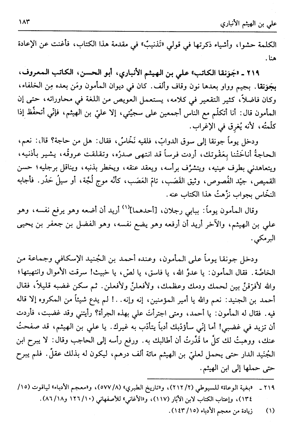 عَليّ بن الْهَيْثَم الْأَنْبَارِي وَالْحسن الْكَاتِب الْمَعْرُوف بجونقا بجيم وواو بعْدهَا نون وقاف وَألف كَانَ فِي ديوَان الْمَأْمُون وَمن بعده من الْخُلَفَاء وَكَانَ فَاضلا كثير التقعير فِي كَلَامه يسْتَعْمل العويص من اللُّغَة فِي محاوراته حتَّى إنَّ الْمَأْمُون قَالَ أَنا أتكلَّم مَعَ النَّاس أَجْمَعِينَ على سجيَّتي إلاَّ عليّ بن الْهَيْثَم فإنَّي أتحفَّظ إِذا كلَّمته لأنَّه يغرق فِي الإغراب