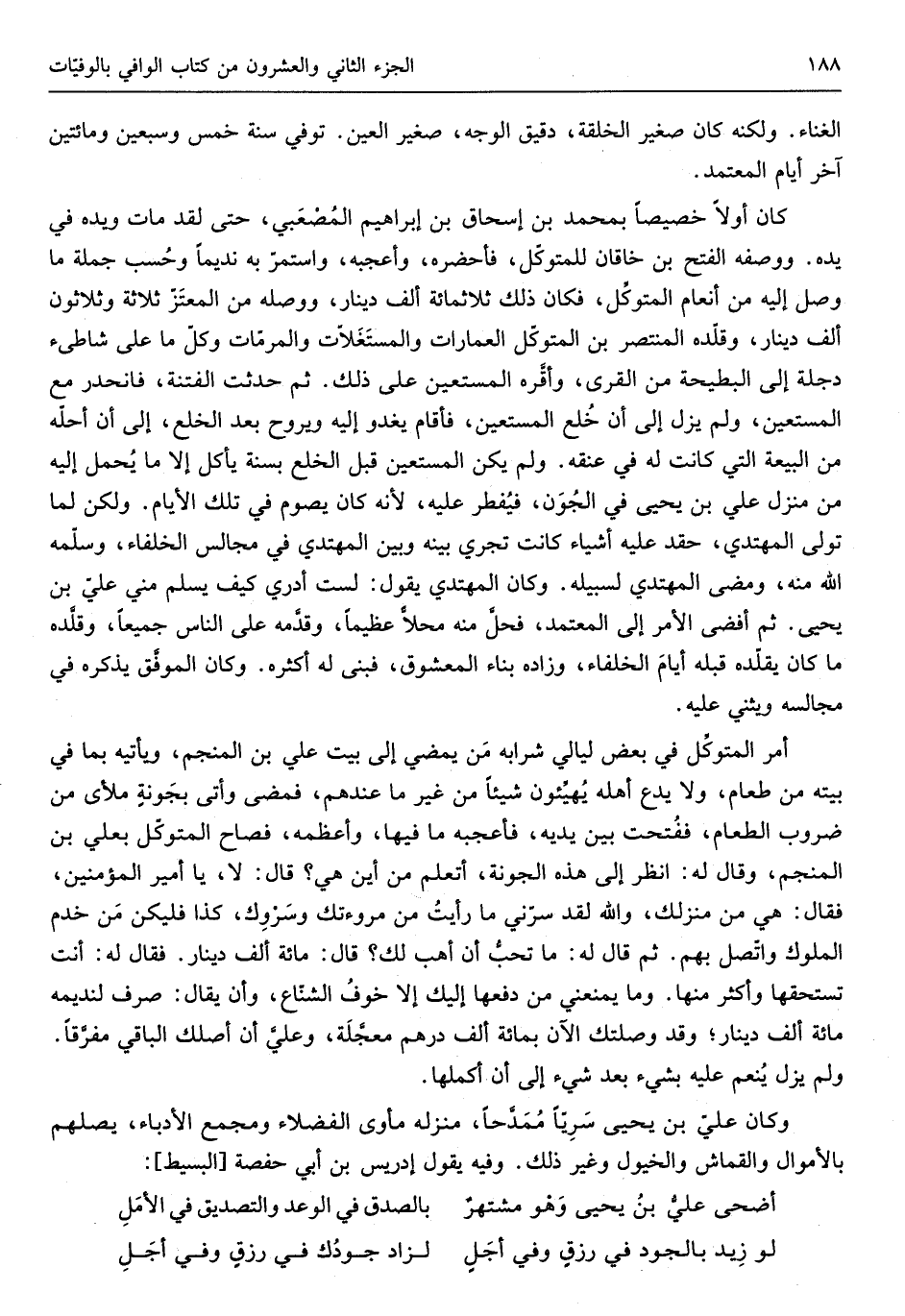 (أضحى عليُّ بن يحيى وَهُوَ مشتهرٌ ... بِالصّدقِ فِي الْوَعْد والتصديق فِي الأملِ)