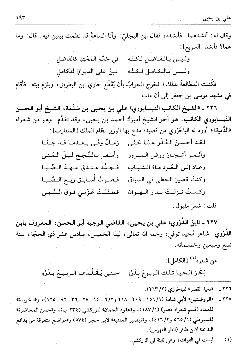 عَليّ بن يحيى القَاضِي الْوَجِيه أَبُو الْحسن الْمَعْرُوف بِابْن الذِّرْوي شَاعِر مُجيد توفّي رَحمَه الله تَعَالَى لَيْلَة الْخَمِيس سادس عشر ذِي الحجّة سنة تسع وَسبعين وَخمْس مائَة وَمن شعره