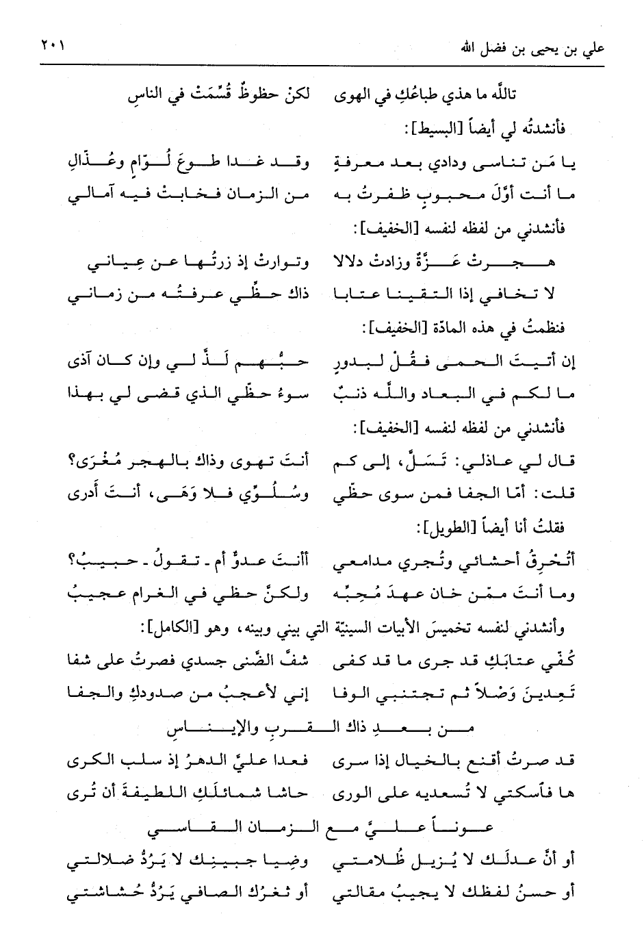 (وَمَا أنتَ ممَّن خَان عهدَ محبِّه ... ولكنَّ حظِّي فِي الغرام عجيبُ)