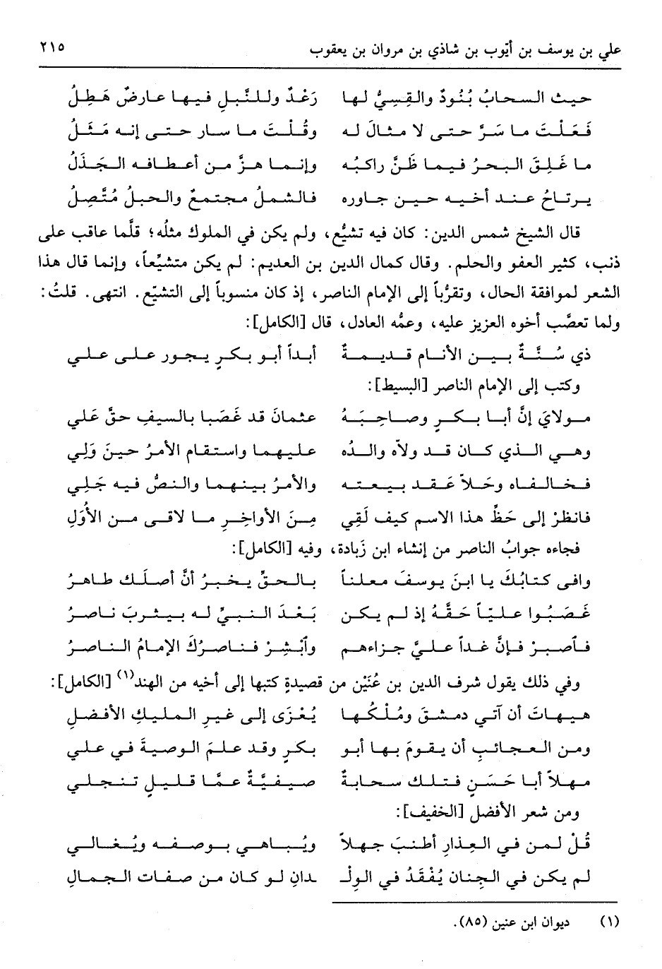 (وافى كتابك يَا ابْن يُوسُف مُعْلنا ... بالحقِّ يخبرُ أنَّ أصلك طاهرُ)