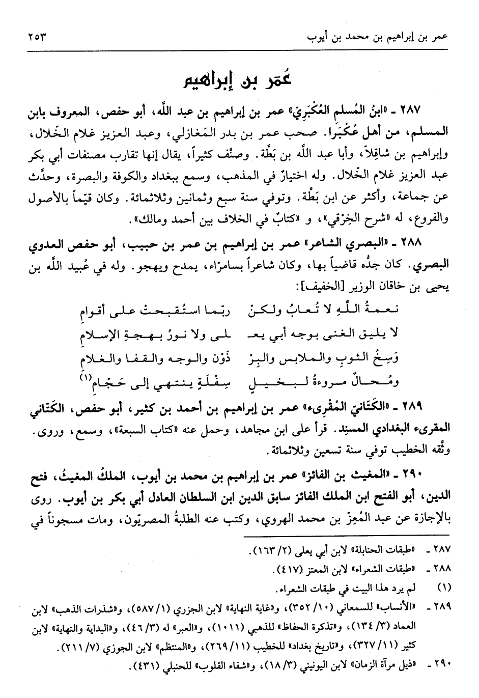 عمر بن إِبْرَاهِيم بن عبد الله أَبُو حَفْص الْمَعْرُوف بِابْن الْمُسلم من أهل عُكْبَرا صحب عمر بن بدر المَغازلي وَعبد الْعَزِيز غُلَام الخلاّل وَإِبْرَاهِيم بن شاقِلاّ وَأَبا عبد الله بن بَطَّة