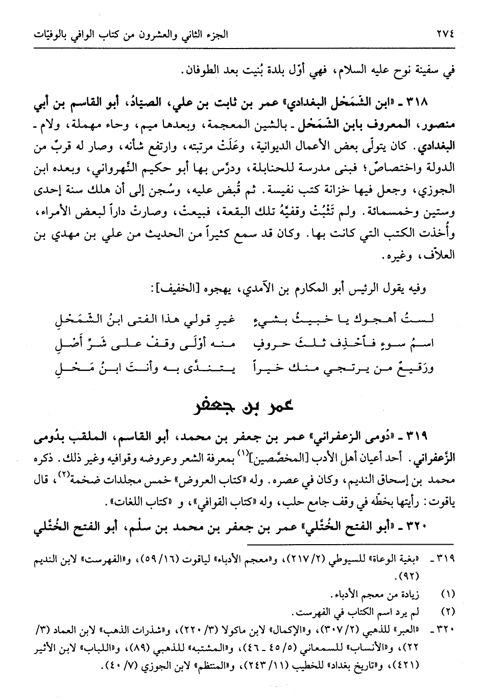 عَليّ بن جَعْفَر بن مُحَمَّد أَبُو الْقَاسِم الملقب بدُومى الزَّعفراني أحد أَعْيَان أهل الْأَدَب المخصَّصين بِمَعْرِِفَة الشّعْر وعروضه وقوافيه وَغير ذَلِك ذكره مُحَمَّد بن إِسْحَاق النديم وَكَانَ فِي عصره وَله كتاب الْعرُوض خمس مجلدات ضخمة قَالَ ياقوت رَأَيْتهَا بخطِّه فِي وقف جَامع حلب وَله كتاب القوافي وَكتاب اللُّغَات
