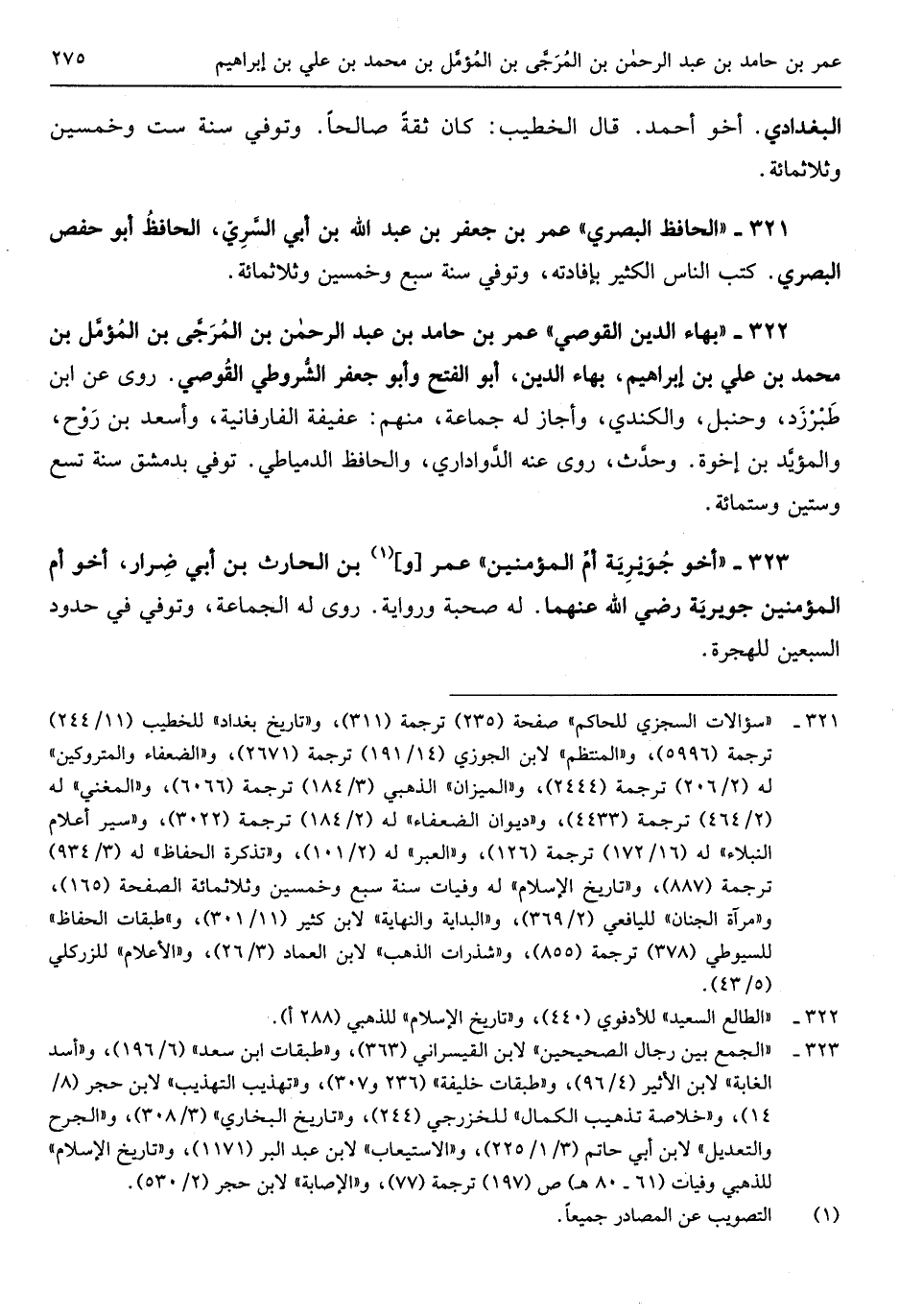 عمر بن جَعْفَر بن عبد الله بن أبي السَّرِيّ الْحَافِظ أَبُو حَفْص الْبَصْرِيّ كتب النَّاس الْكثير بإفادته وتوفِّي سنة سبع وَخمسين وَثَلَاث مائَة