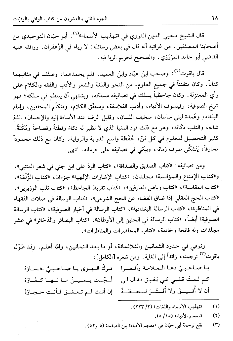 قَالَ الشَّيْخ محيي الدّين النَّوَوِيّ فِي تَهْذِيب الأَسماء أَبُو حيَّان التوحيدي من أَصْحَابنَا المصنَّفين