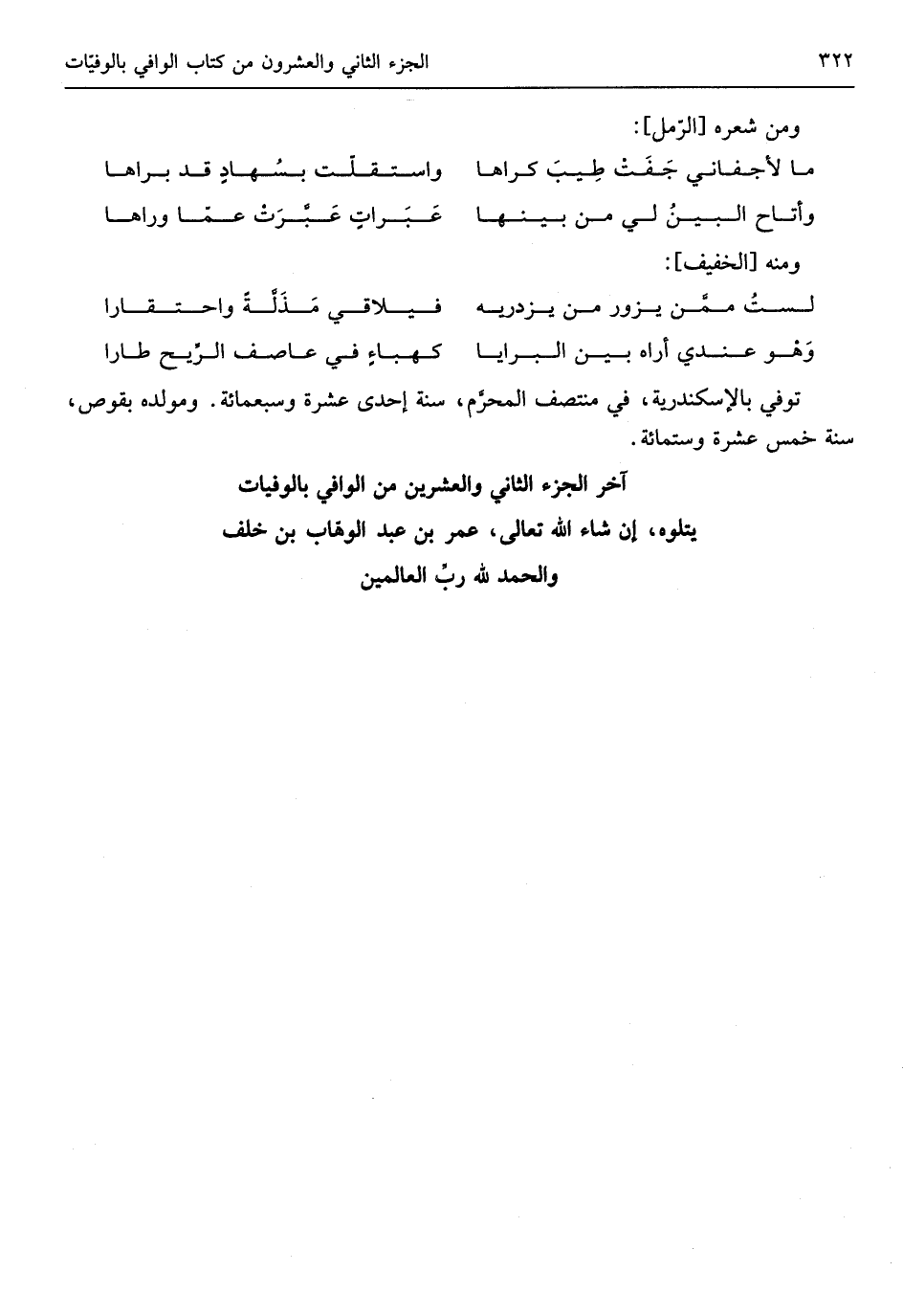 كتاب الوافي بالوفيات (اسم الجزء: 22)