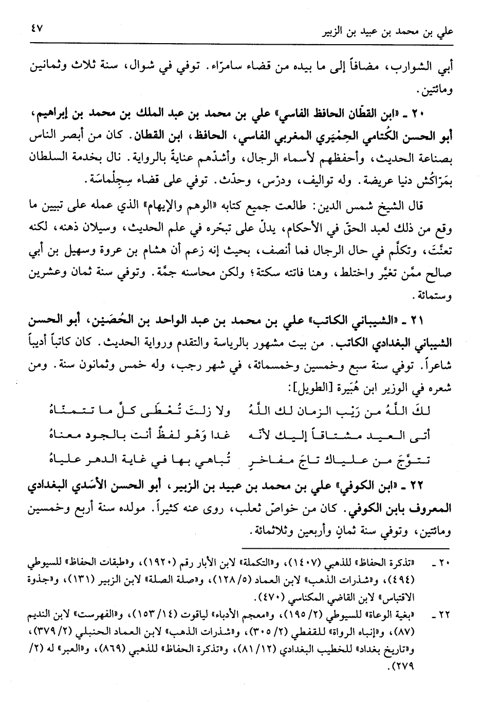 عَليّ بن مُحَمَّد بن عبيد بن الزبير أَبُو الْحسن الأسَدي البغداذي الْمَعْرُوف بِابْن الْكُوفِي كَانَ)