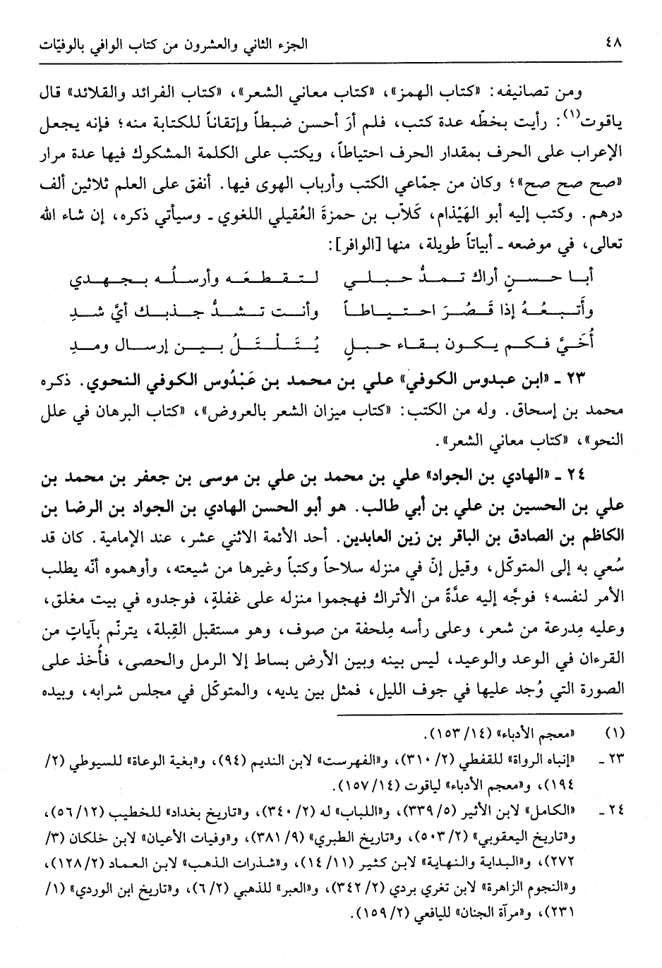 عَليّ بن مُحَمَّد بن عَبدُوس الْكُوفِي النَّحْوِيّ ذكره مُحَمَّد بن إِسْحَاق وَله من الْكتب كتاب ميزَان الشّعْر بالعروض كتاب الْبُرْهَان فِي علل النَّحْو كتاب مَعَاني الشّعْر