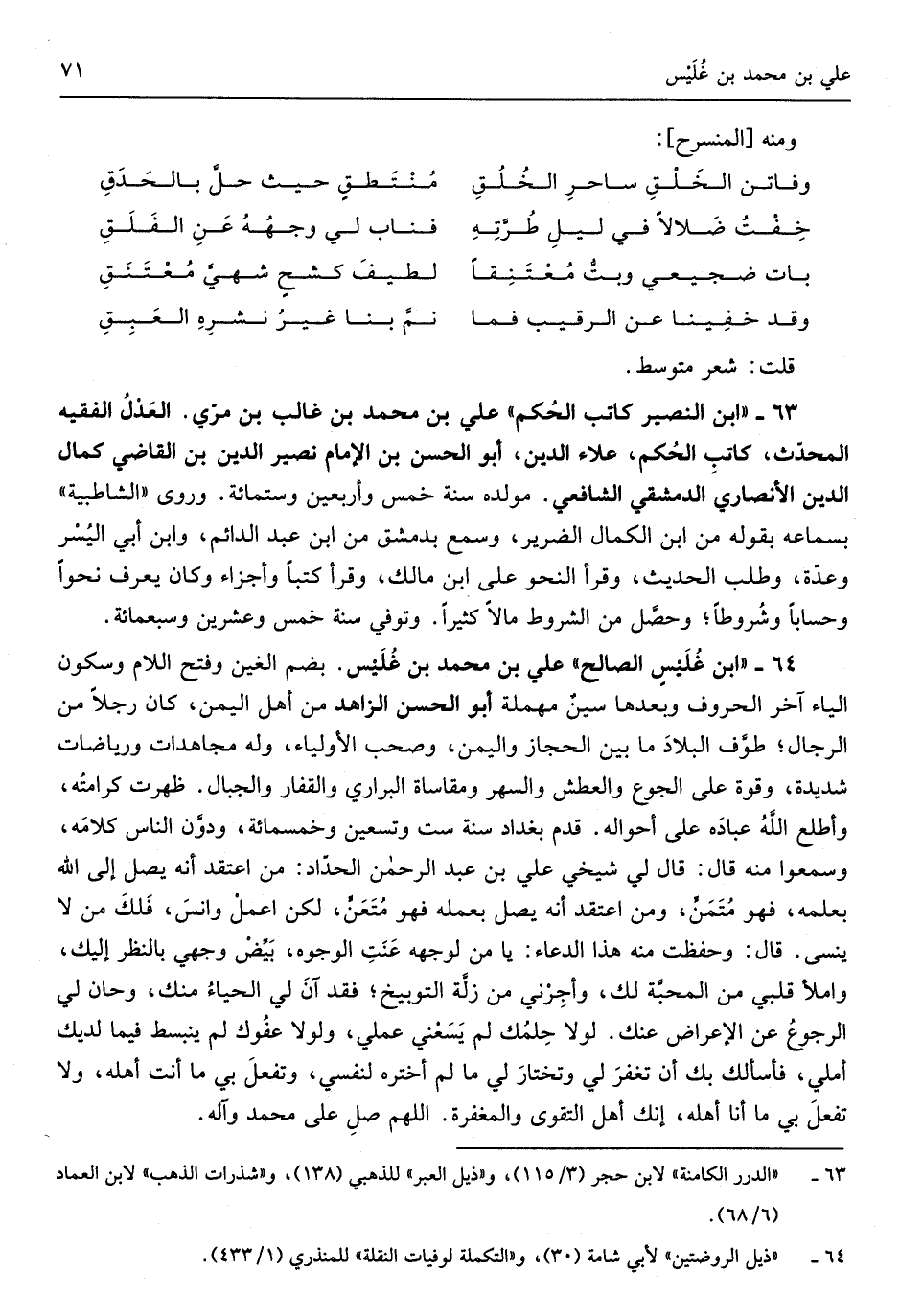 عَليّ بن مُحَمَّد بن غُلَيْس بِضَم الْغَيْن وَفتح اللَّام وَسُكُون الْيَاء آخر الْحُرُوف وَبعدهَا سينٌ مُهْملَة أَبُو الْحسن الزَّاهِد من أهل الْيمن كَانَ رجلا من الرِّجَال طوَّف الْبِلَاد مَا بَين الْحجاز)