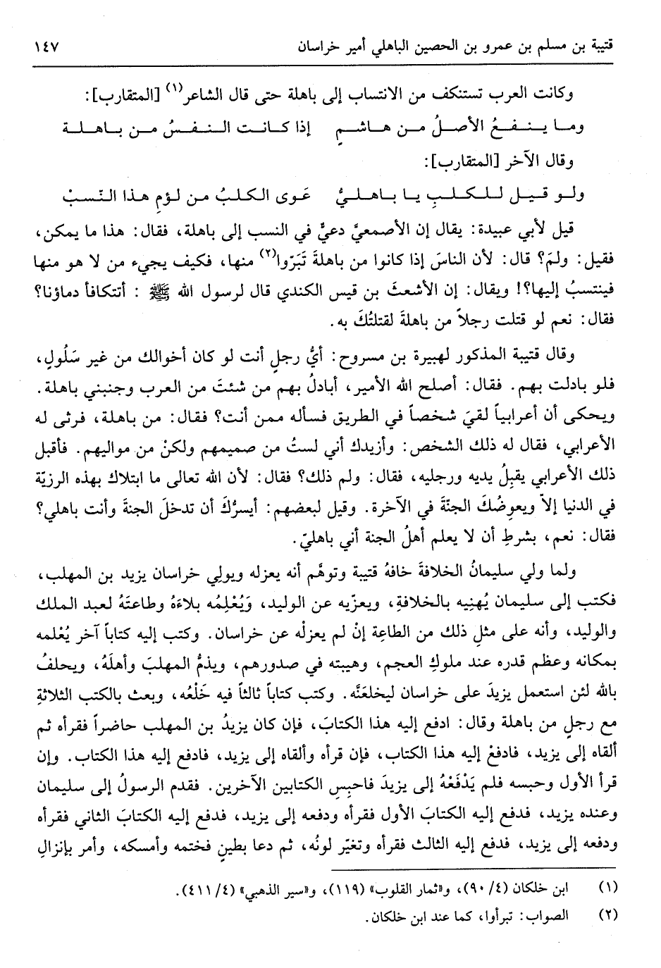 وَقَالَ قُتَيْبَة الْمَذْكُور لهبيرة بن مسروح أَي رجل أَنْت لَو كَانَ أخوالك من غير سلول فَلَو بادلت بهم فَقَالَ أصلح الله الْأَمِير أبادل بهم من شِئْت من الْعَرَب وجنبني باهلة