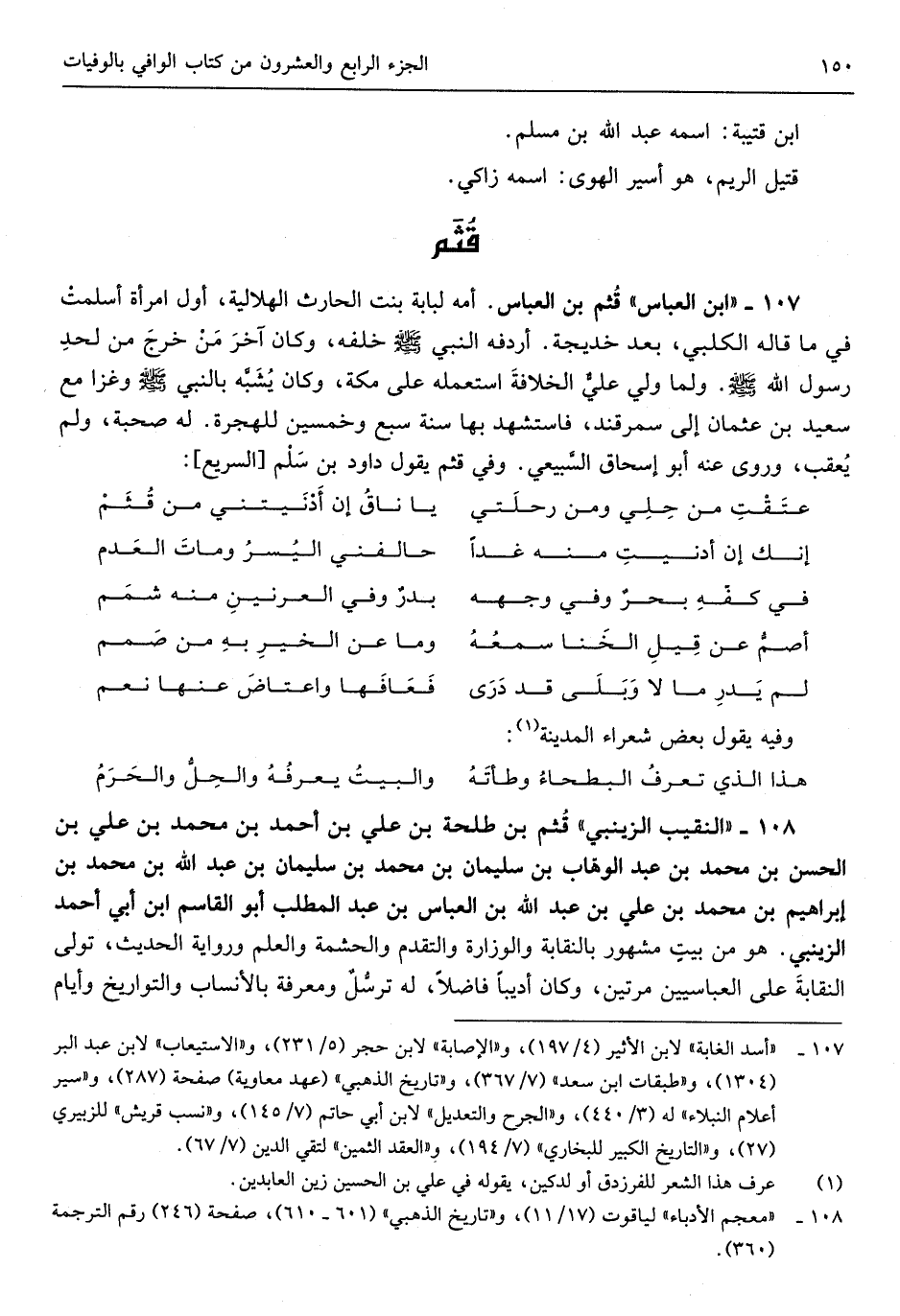 قثم بن الْعَبَّاس أمه لبَابَة بنت الْحَارِث الْهِلَالِيَّة أول امْرَأَة فِي مَا قَالَه الْكَلْبِيّ بعد خَدِيجَة