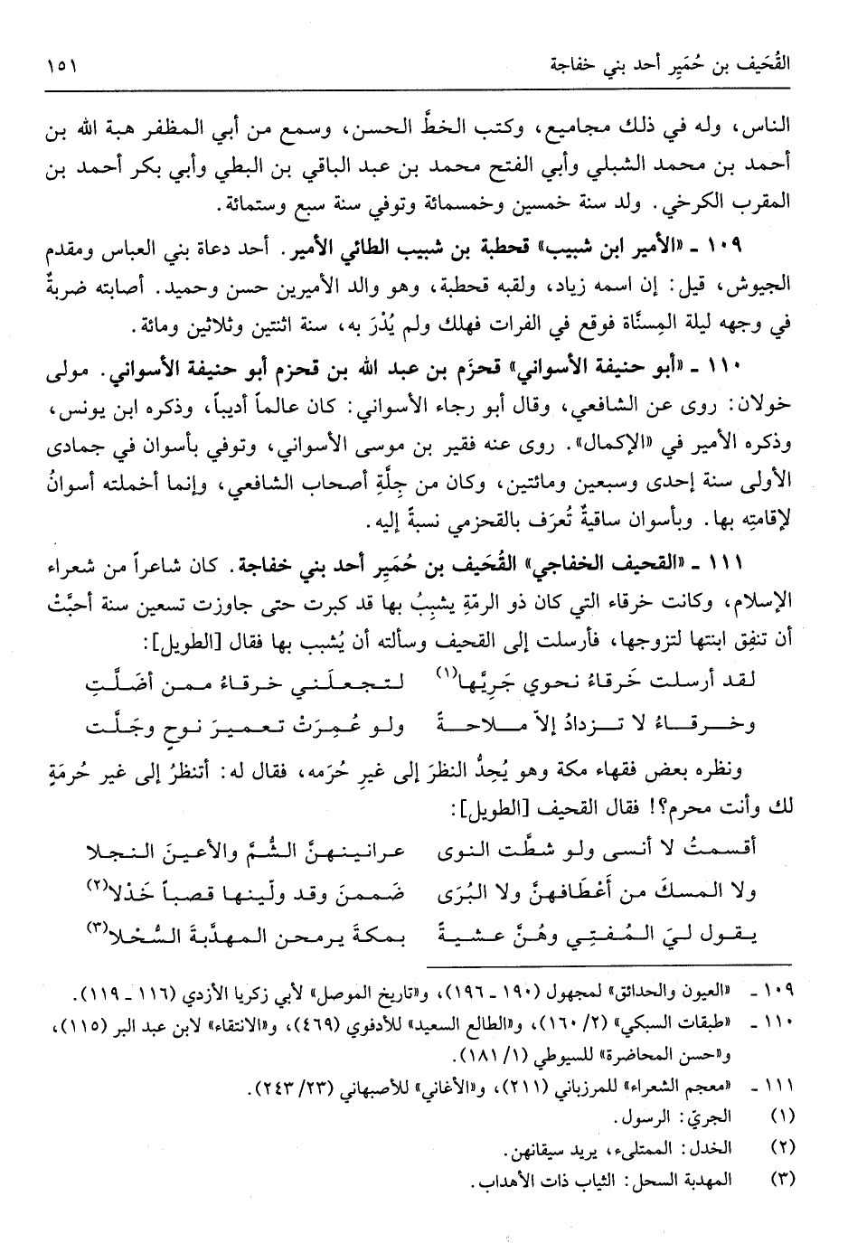 القحيف بن حمير أحد بني خفاجة كَانَ شَارِعا من شعراء الْإِسْلَام وَكَانَت خرقاء الَّتِي كَانَ ذُو الرمة يشبب بهَا قد كَبرت حَتَّى جَاوَزت تسعين سنة أحبتا أَن تنْفق ابتنتها لتزوجها فَأرْسلت إِلَى القحيف وَسَأَلته أَن يشبب بهَا فَقَالَ