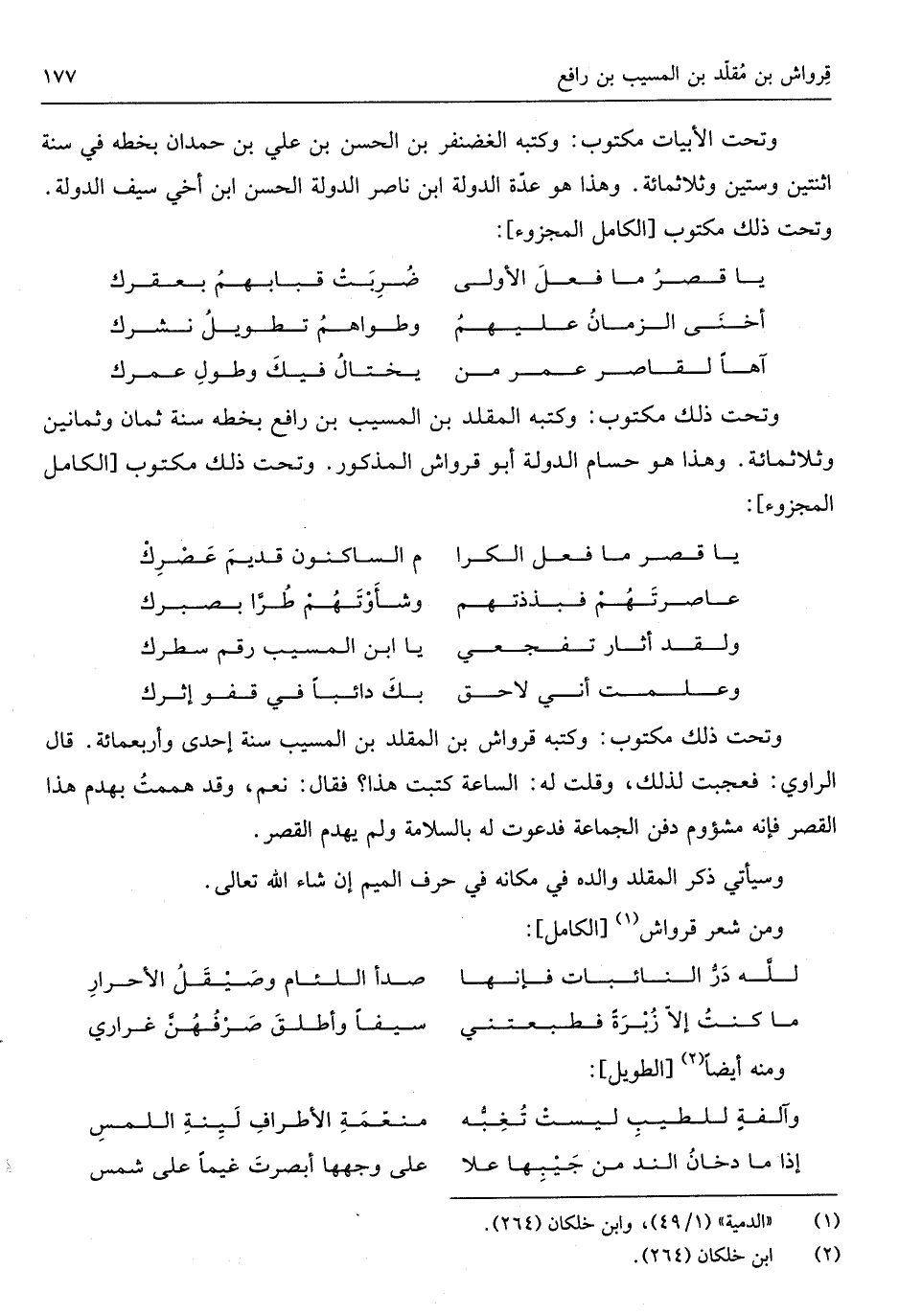وَهَذَا هُوَ حسام الدولة أَبُو قرواش الْمَذْكُور وَتَحْت ذَلِك مَكْتُوب يَا قصر مَا فعل المرام الساكنون قديم عصرك