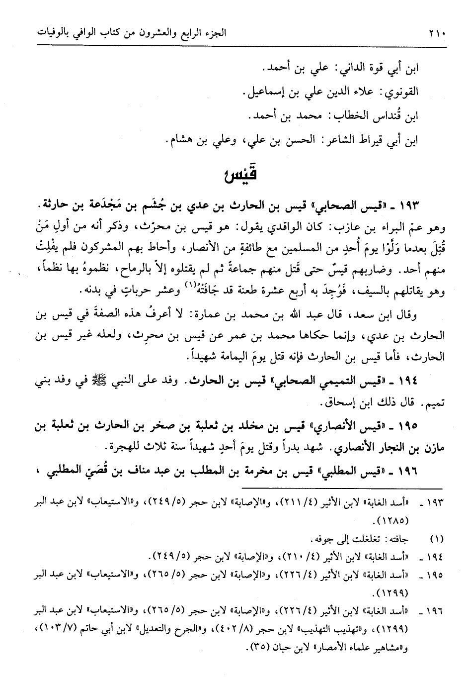 وضاربهم قيس حَتَّى قتل مِنْهُم جمَاعَة ثمَّ لم يقتلوه إِلَّا بِالرِّمَاحِ نموه بهَا نظماً وَهُوَ يقاتلهم بِالسَّيْفِ فَوجدَ بِهِ أَربع عشرَة طعنة قد جافته وَعشر حربات فِي بدنه