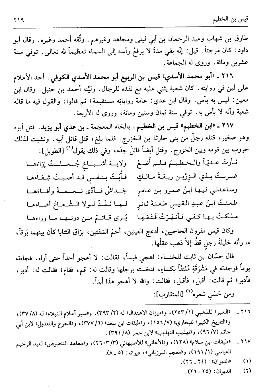 (طعنت ابْن عبد الْقَيْس طعنة ثائرٍ ... لَهَا نفد لَوْلَا الشعاع أضاءها)