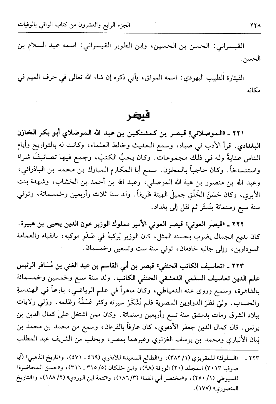 قَيْصر بن كمشتكين بن عبد الله الموصلاي ابو بكر الخازن الْبَغْدَادِيّ قَرَأَ الْأَدَب فِي صباه وَسمع الحَدِيث وخالط الْعلمَاء وَكَانَت لَهُ بالتواريخ وَأَيَّام النَّاس عناية وَله فِي ذَلِك مجموعات