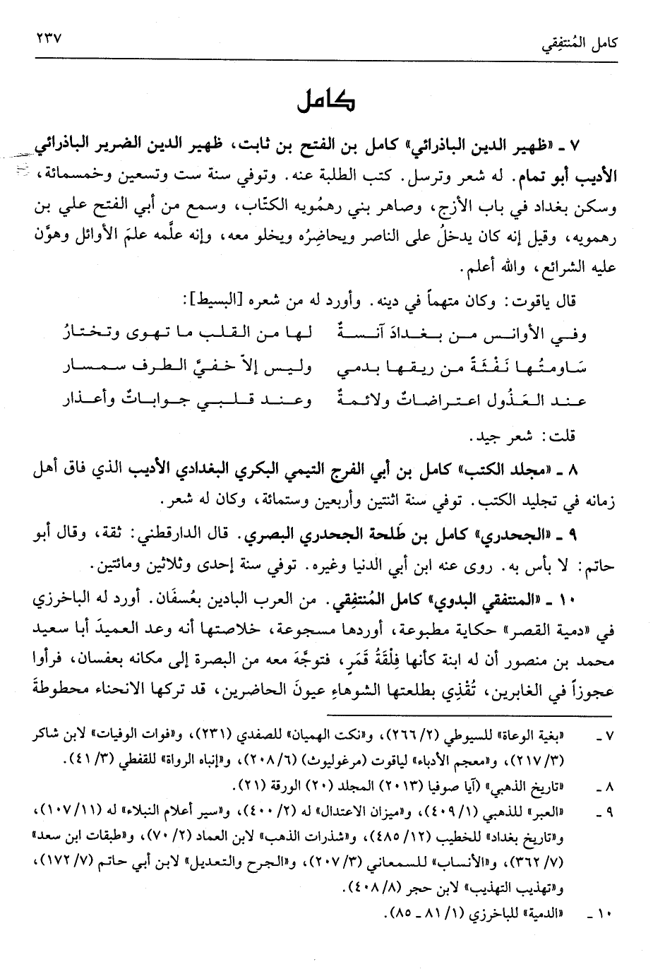 كَامِل بن الْفَتْح بن ثَابت ظهير الدّين الضَّرِير الباذرائي الأديب أَبُو تَمام)