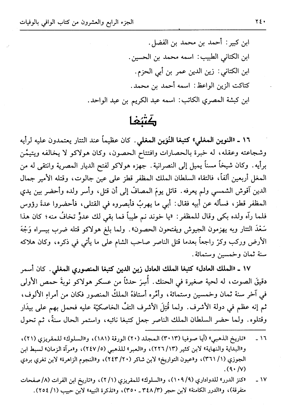 وَكَانَ شَيخا مسناً يمِيل إِلَى النَّصْرَانِيَّة جهزه هولاكو لفتح الديار المصرية وتنتقى لَهُ من الْمغل أَرْبَعِينَ ألفا فالتقاه السُّلْطَان الْملك المظفر قطز على عين جالوت وَقَتله الْأَمِير جمال الدّين آقوش الشمسي وَلم يعرفهُ