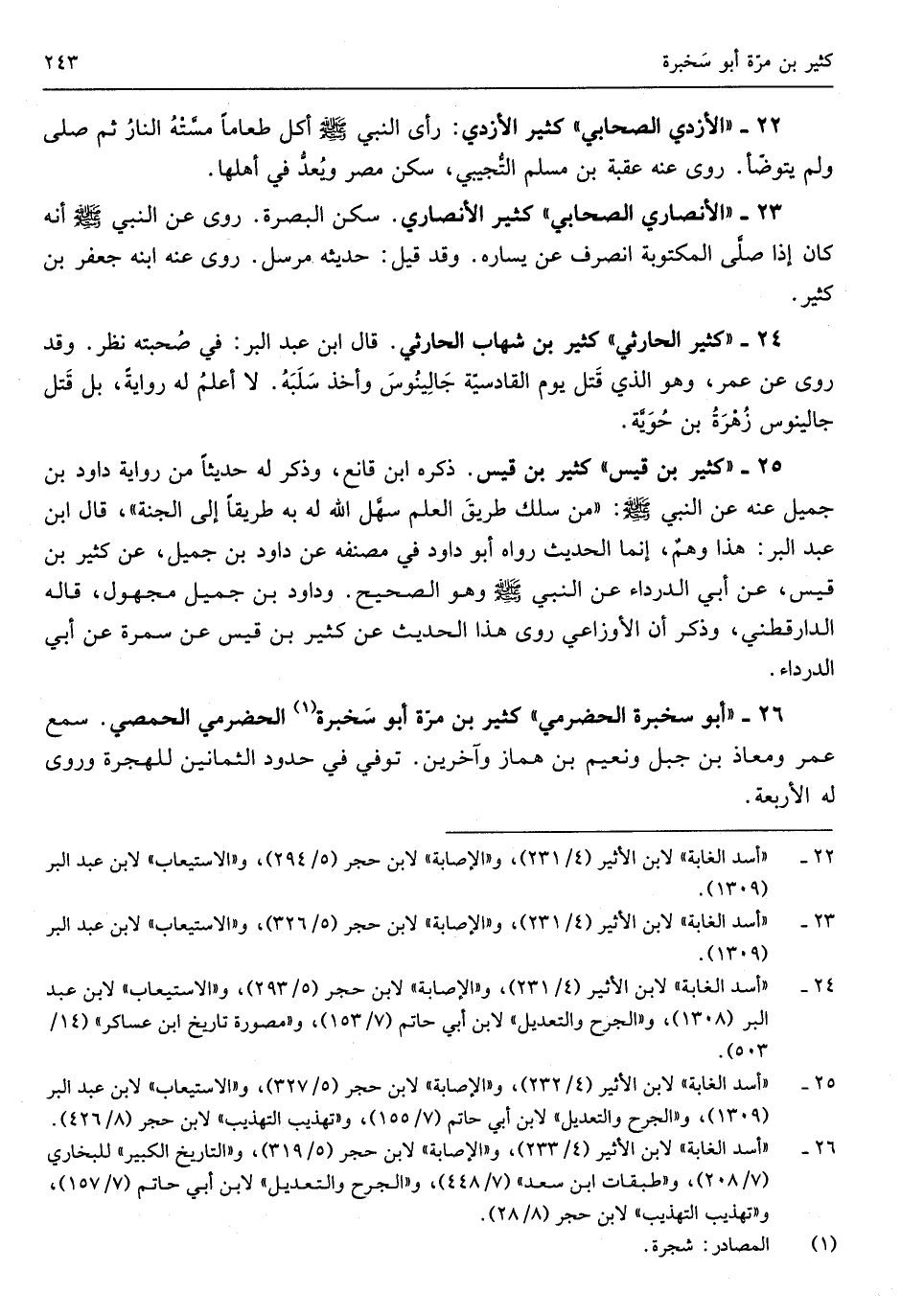 كثير الْأَزْدِيّ رأى النَّبِي صلى الله عَلَيْهِ وَسلم أكل طَعَاما مسته النَّار ثمَّ صلى وَلم يتَوَضَّأ روى عَنهُ عقبَة بن مُسلم التجِيبِي سكن مصر ويعد فِي أَهلهَا