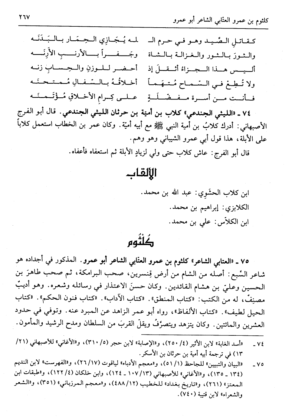 كُلْثُوم بن عَمْرو العتابي الشَّاعِر أَبُو عَمْرو الْمَذْكُور فِي أجداده هُوَ شَاعِر السَّبع اصله من الشَّام من أَرض قنسرين صحب البرامكة ثمَّ صحب طَاهِر بن الْحُسَيْن وَعلي بن هِشَام القائدين
