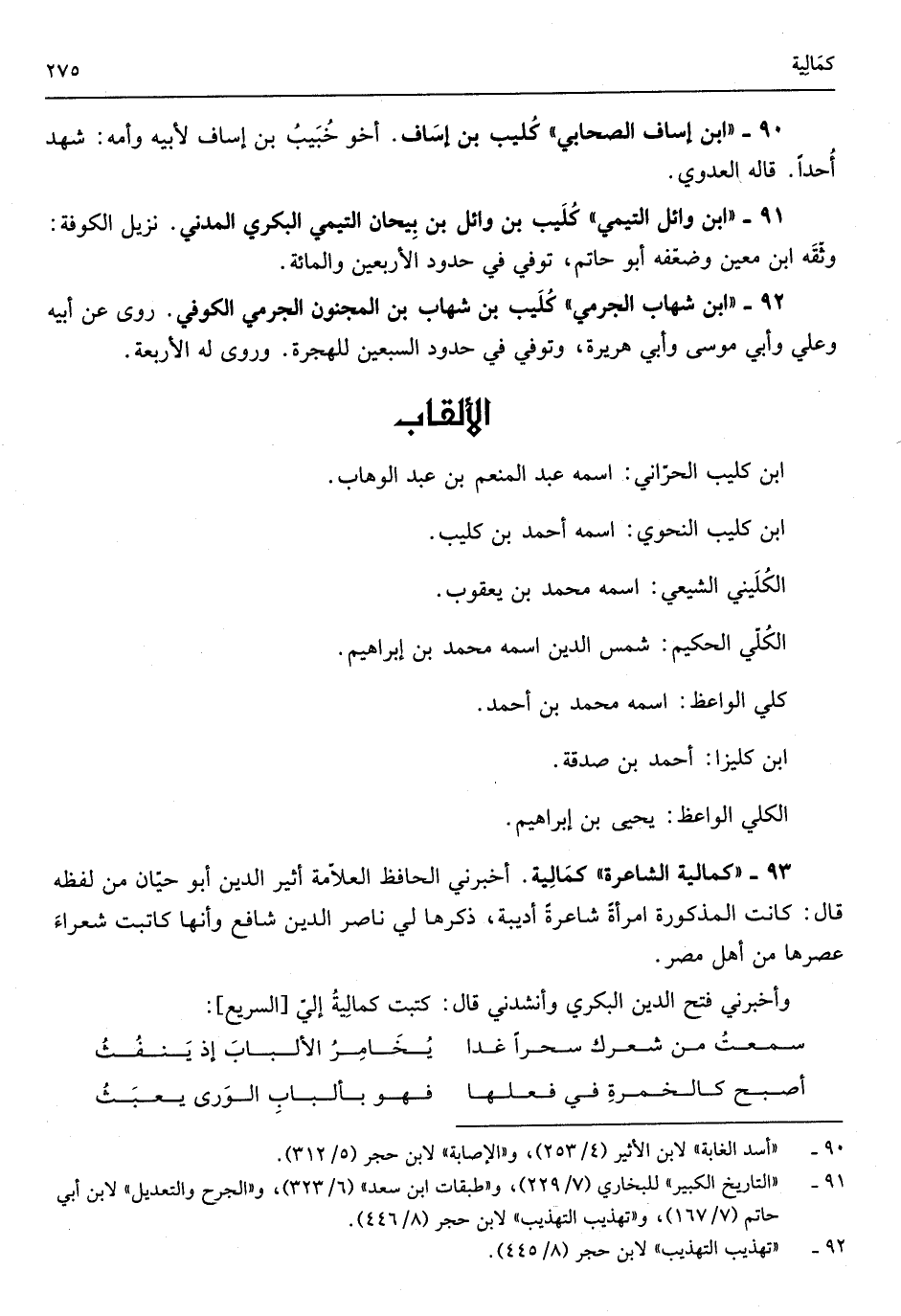 كمالية أَخْبرنِي الْحَافِظ العلاّمة أثير الدّين أَبُو حَيَّان من لَفظه قَالَ كَانَت الْمَذْكُورَة امْرَأَة شاعرة أديبة ذكرهَا لي نَاصِر الدّين شَافِع وَأَنَّهَا كاتبت شعراء عصرها من أهل مصر