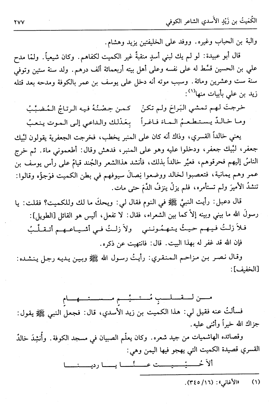 قَالَ أَبُو عُبَيْدَة لَو لم يكن لبني أَسد منقبة غير الْكُمَيْت لكفاهم