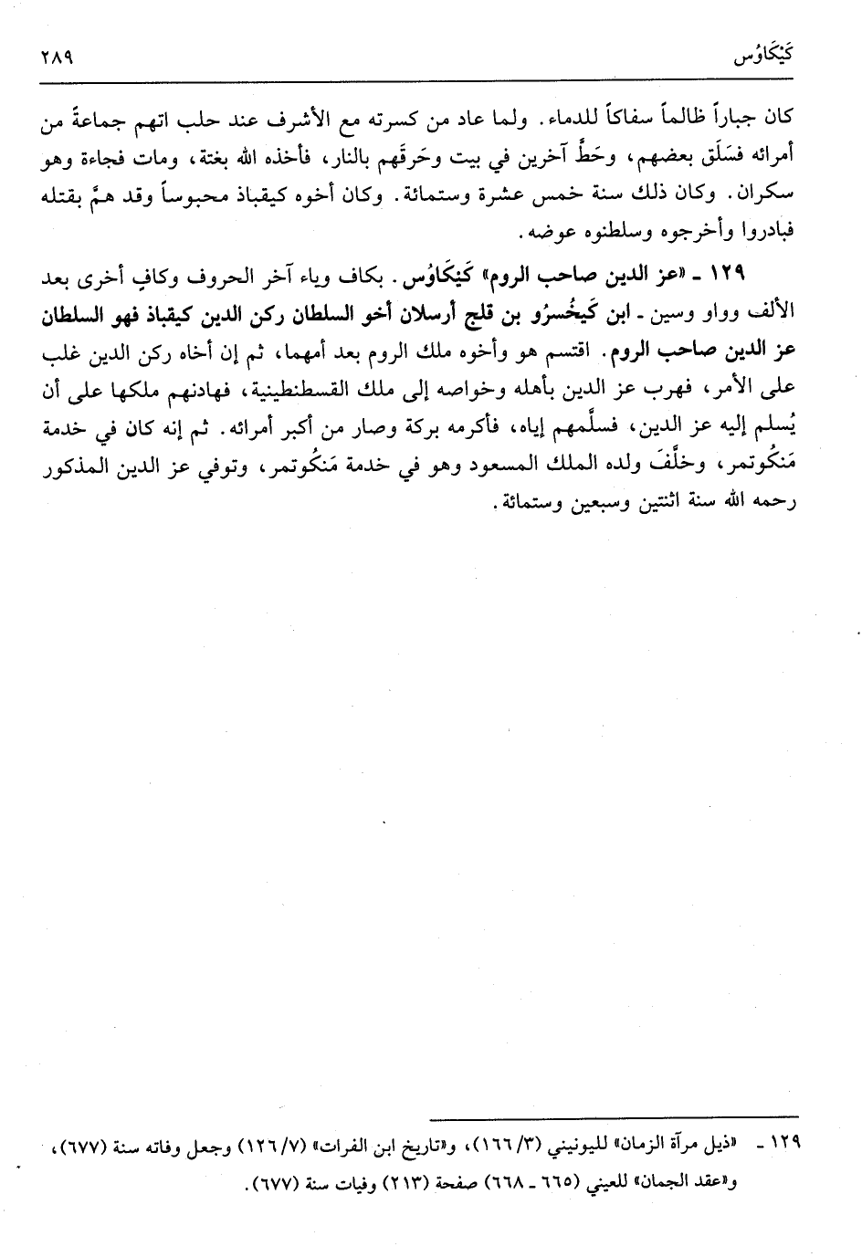 ثمَّ إِنَّه كَانَ فِي خدمَة منكوتمر وَخلف وَلَده الْملك المسعود وَهُوَ فِي خدمَة منكوتمر وَتُوفِّي عز الدّين الْمَذْكُور رَحمَه الله سنة اثْنَتَيْنِ وَسبعين وسِتمِائَة)