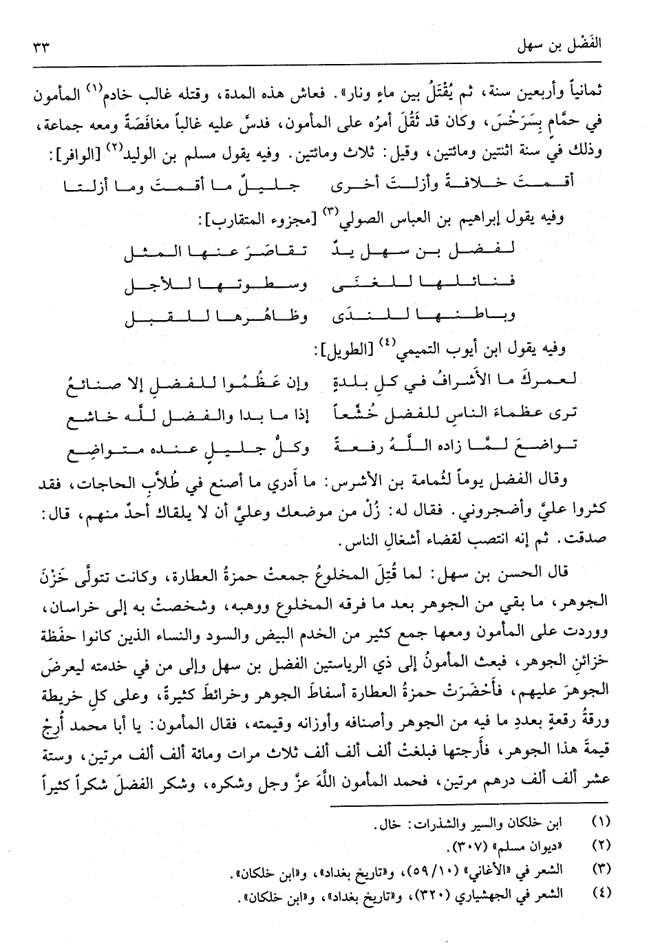قَالَ الْحسن بن سهل لما قتل المخلوع جمعت حَمْزَة العطارة وَكَانَت تتولى خزن الْجَوْهَر مَا بَقِي من الْجَوْهَر بعد مَا فرقه المخلوع ووهبه وشخصت بِهِ إِلَى خُرَاسَان ووردت على الْمَأْمُون وَمَعَهَا جمع كثير من الخدم الْبيض والسود وَالنِّسَاء الَّذين كَانُوا حفظَة خَزَائِن الْجَوْهَر فَبعث الْمَأْمُون إِلَى ذِي الرياستين الْفضل بن سهل وعَلى من فِي خدمته ليعرض الْجَوْهَر عَلَيْهِم فأحضرت حَمْزَة العطارة أسفاط الْجَوْهَر وخرائط كَثِيرَة وعَلى كل خريطة ورقة رقْعَة بِعَدَد مَا فِيهِ من الْجَوْهَر وأصنافه وأوزانه وَقِيمَته فَقَالَ الْمَأْمُون يَا أَبَا مُحَمَّد أرج قيمَة هَذَا الْجَوْهَر فأرجتها فبلغت ألف ألف ألف ثَلَاث مَرَّات وَمِائَة ألف ألف مرَّتَيْنِ وَسِتَّة عشر ألف ألف دِرْهَم مرَّتَيْنِ فتحمد الْمَأْمُون الله عز وَجل وشكره وشكر الْفضل شكرا كثراً