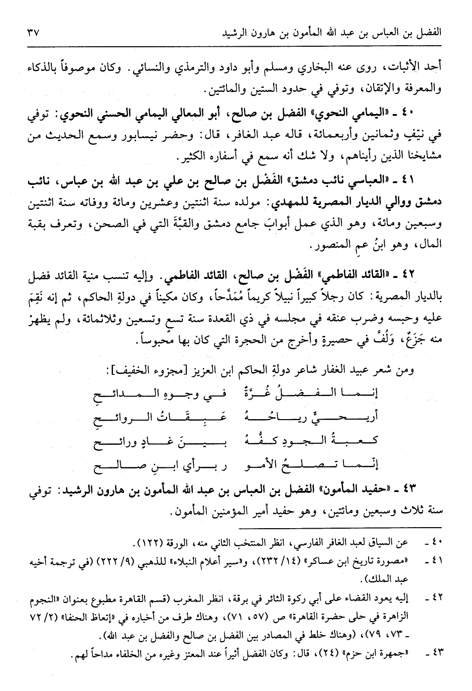 الْفضل بن الْعَبَّاس بن عبد الله الْمَأْمُون بن هَارُون الرشيد توفّي سنة ثَلَاث وَسبعين وَمِائَتَيْنِ وَهُوَ حفيد أَمِير الْمُؤمنِينَ الْمَأْمُون