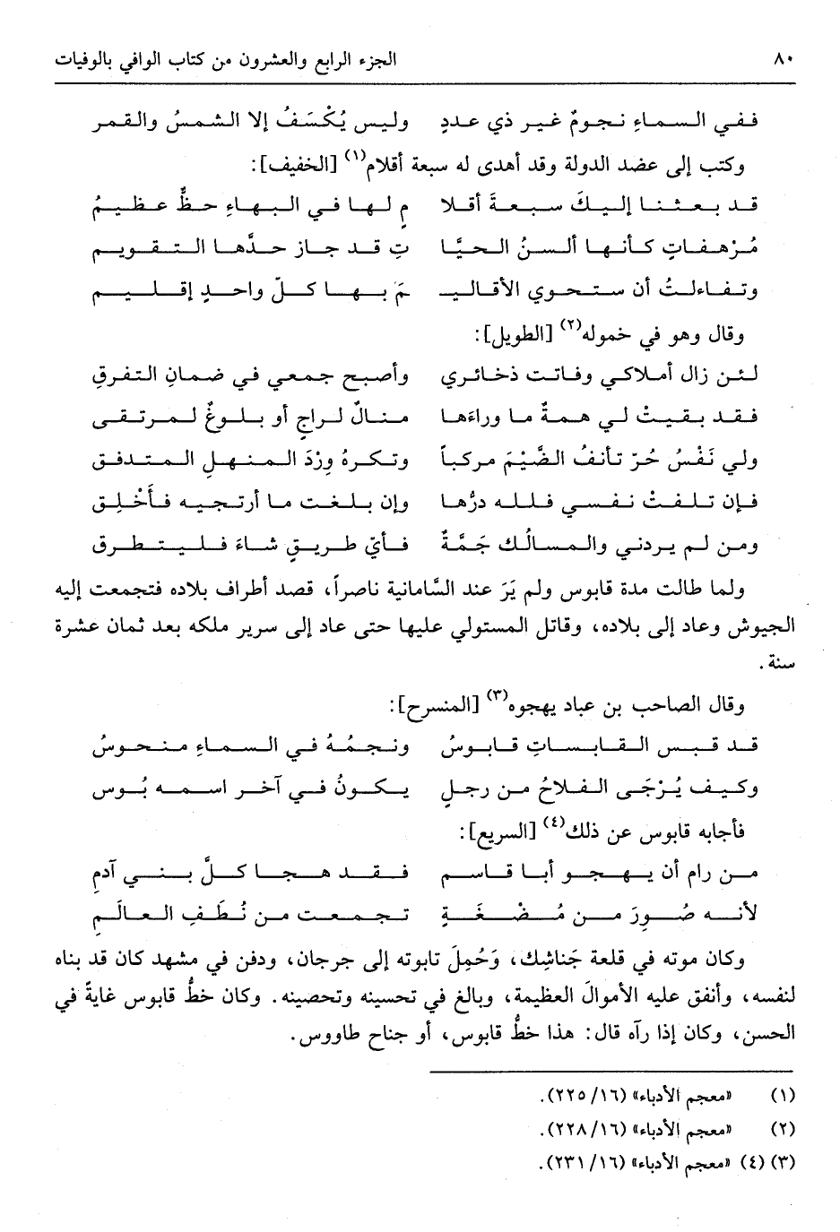 وَكَانَ خطّ قَابُوس غَايَة فِي الْحسن وَكَانَ إِذا رَآهُ قَالَ هَذَا خطّ قَابُوس أَو جنَاح طَاوُوس)