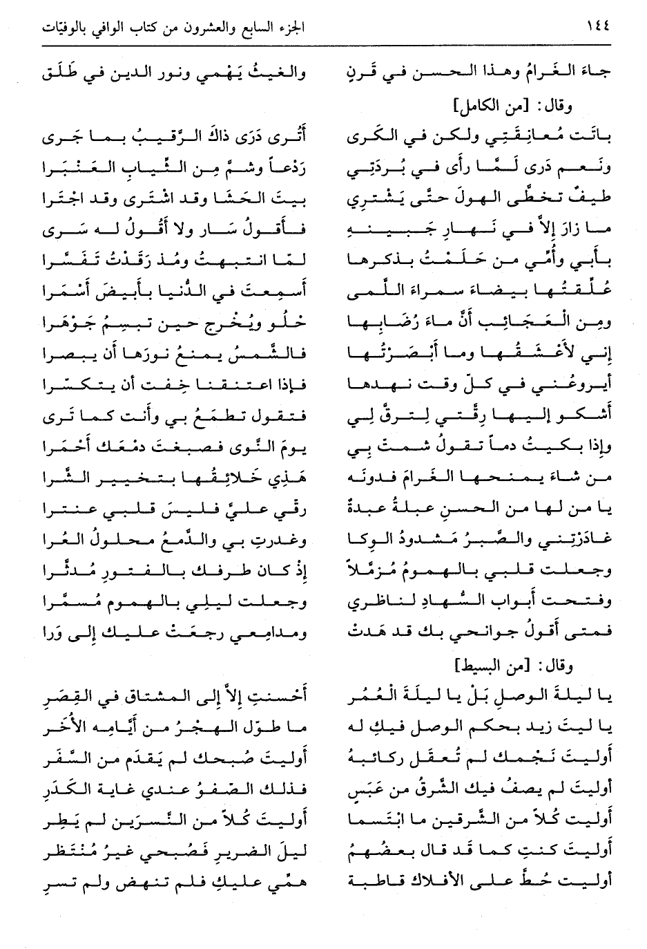 (يَا ليلةَ الوصلِ بَل ليلةَ العُمُر ... أَحسنتِ إلاَّ إِلَى المشتاق فِي القِصَرِ)