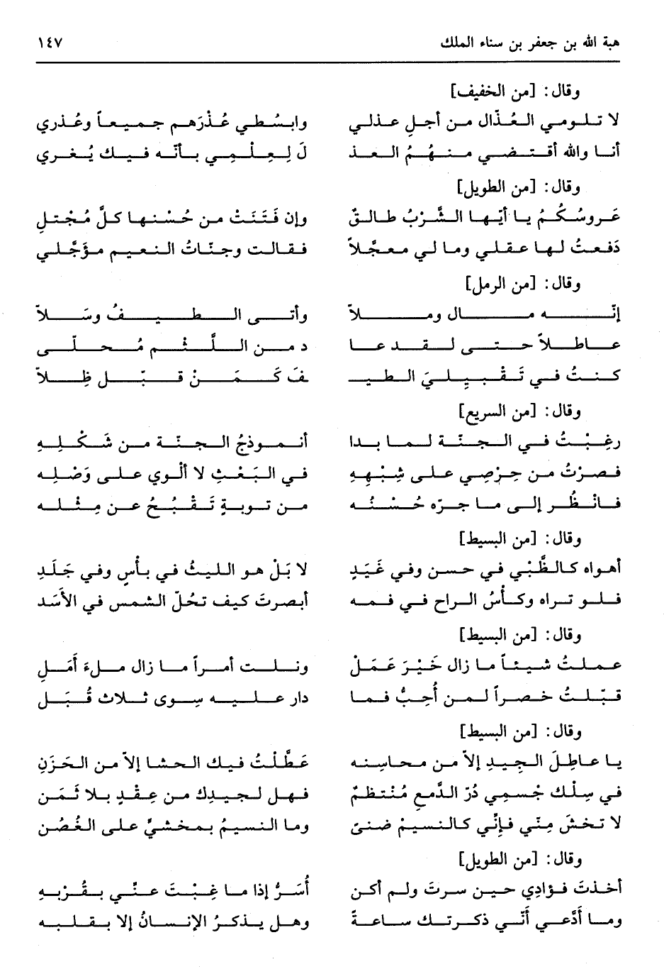 (يَا عاطِلَ الجِيِدِ إلاّ من محاسِنه ... طَّلتُ فِيك الحشا إِلَّا من الحَزَنِ)