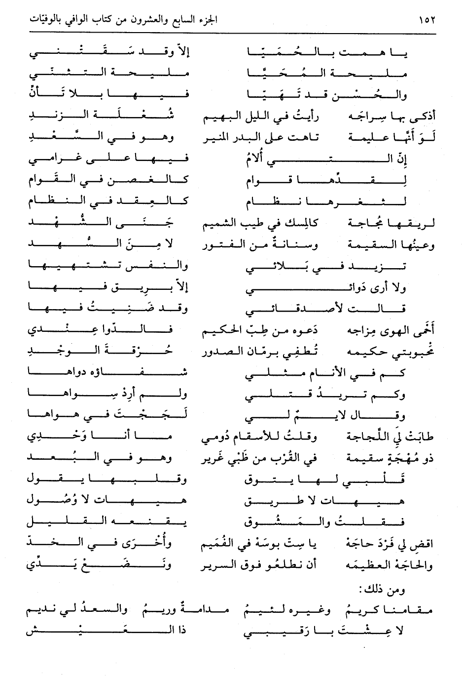 طابت لي اللجاجة وَقلت للأسقام دوميما أَنا وحدي ذُو مهجة سقيمة فِي القُرب من ظَبي غَريروهو فِي البُعد