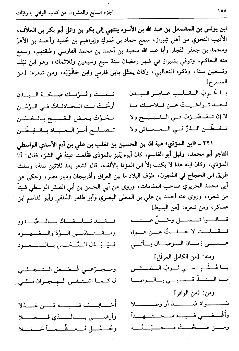 بن يُونُس بن المشمعل بن عبد الله بن الْأسود يبنتهي إِلَى بكر بن وَائِل أَبُو بكر بن العلاف الأديب النَّحْوِيّ من أهل شيزار سمع حَمَّاد بن مُدرِك وَإِبْرَاهِيم بن حُميد وَأحمد بن الْأَعَز وَمُحَمّد بن جَعْفَر وَأَبا عبد الله مُحَمَّد بن أَحْمد بن مُحَمَّد الْفَارِسِي وطبقتهم وَسمع مِنْهُ الْحَاكِم وَتُوفِّي بشيزار فِي شهر رَمَضَان سنة سبع وَسبعين وثلاثمائة وَهُوَ ابْن نَيف وَتِسْعين سنة وَذكره الثعالبي وَكَانَ يمثل بِابْن فارسٍ وَابْن خالَوَيه وَمن شعره
