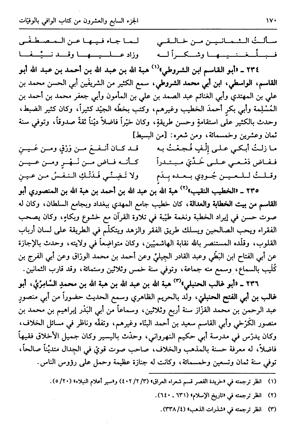 هبة الله بن عبد الله بن أَحْمد بن عبد الله أَبُو الْقَاسِم الوَاسِطِيّ ابْن أبي مُحَمَّد الشُّرُوطِي سمع الْكثير من الشريفَين أبي الْحسن مُحَمَّد بن عَليّ بن الْمُهْتَدي وَأبي الْغَنَائِم عبد الصَّمد بن عَليّ بن الْمَأْمُون وَأبي جَعْفَر مُحَمَّد بن أَحْمد بن المُسلِمة وَأبي بكرٍ أحمدَ الْخَطِيب وَغَيرهم وَكتب بِخَطِّهِ الجيدّ كثيرا وَكَانَ كثير الضَّبْط وَحدث بالكثير على استقامةٍ وَحسن طريقةٍ وَكَانَ خيّراً فَاضلا دينا ثِقَة صَدُوقًا وَتُوفِّي سنة ثَمَان وَعشْرين وَخَمْسمِائة وَمن شعره