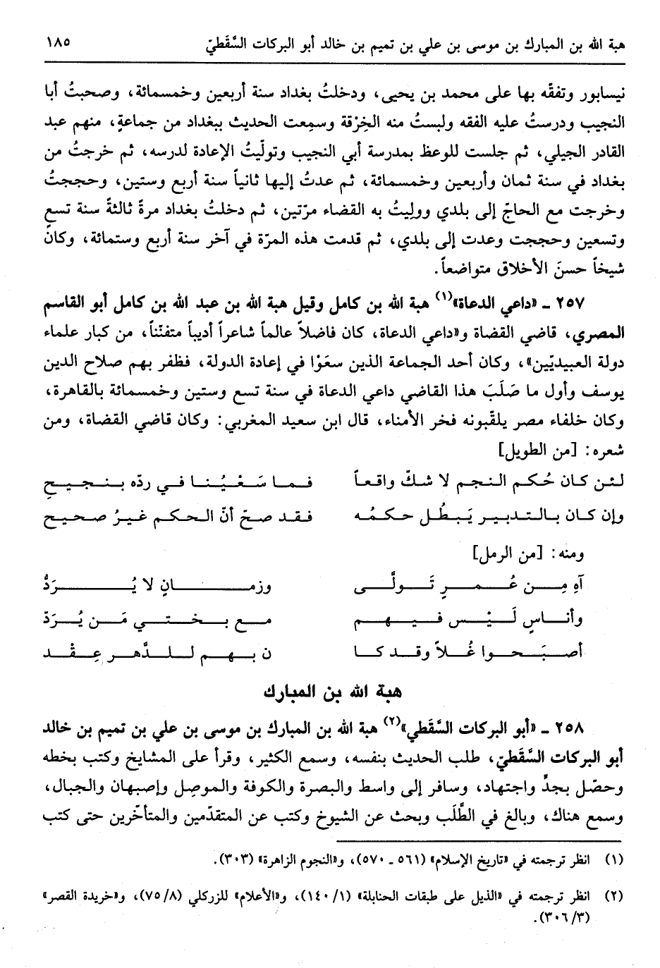 هبة الله بن الْمُبَارك بن مُوسَى بن عَليّ بن تَمِيم بن خَالِد أَبُو البركات السَّقَطي طلب الحَدِيث بِنَفسِهِ وَسمع الْكثير وَقَرَأَ على الْمَشَايِخ وَكتب بِخَطِّهِ وحصّل بجدِّ واجتهاد وسافر إِلَى وَاسِط وَالْبَصْرَة والكوفة والموصِل وإصبهان وَالْجِبَال وَسمع هُنَاكَ وَبَالغ فِي الطَلَب وَبحث عَن الشُّيُوخ وَكتب عَن الْمُتَقَدِّمين والمتأخّرين حَتَّى كتب